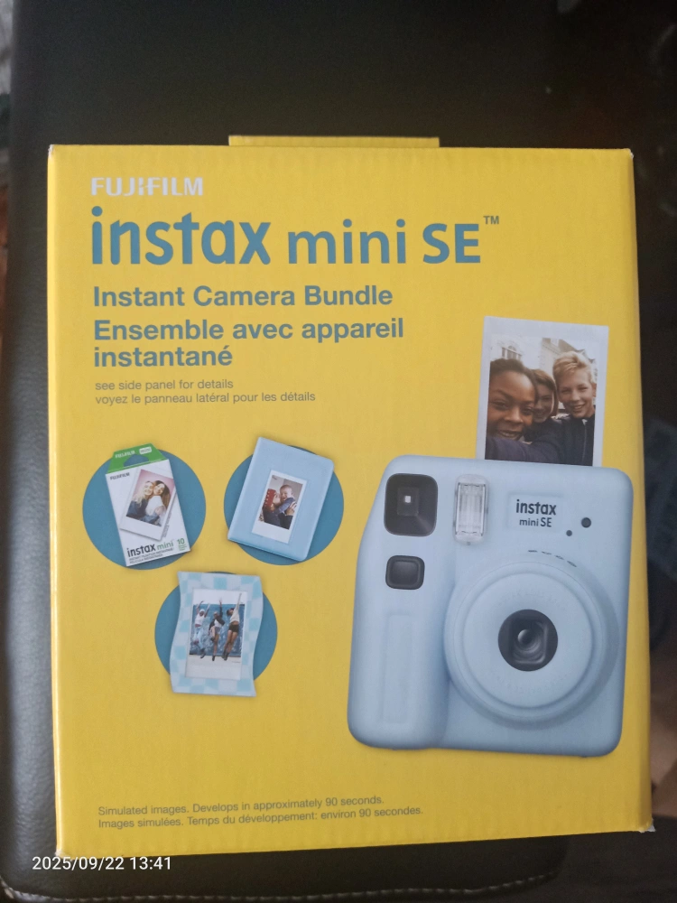 10Selling a brand new Fujifilm Instax Mini SE Instant Camera Bundle! It's still in its original packaging. This is a great way to capture memories instantly. The box shows simulated images that develop in approximately 90 seconds