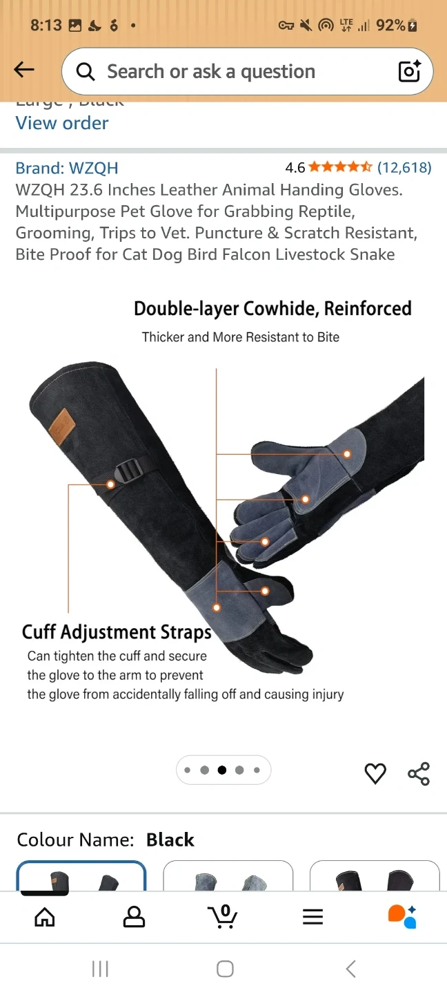 Selling 2 brand new pairs of WZQH 23.6 inches leather animal handling gloves. These multipurpose pet gloves are designed for grabbing reptiles, grooming, trips to the vet, and protecting against punctures and scratches.
