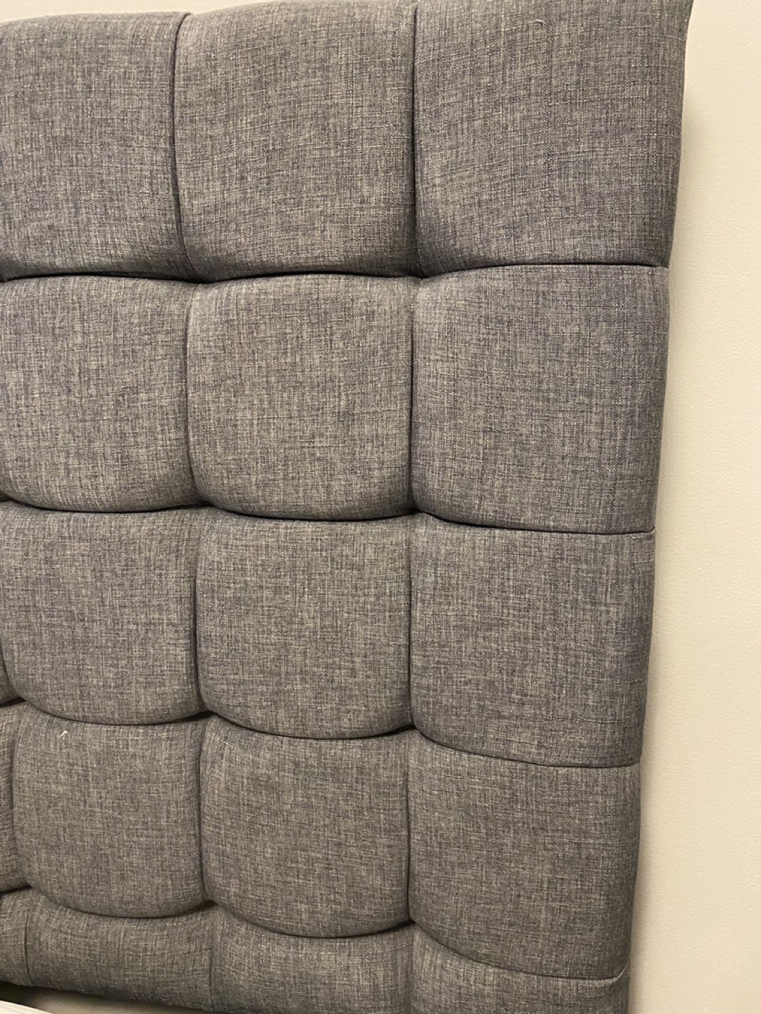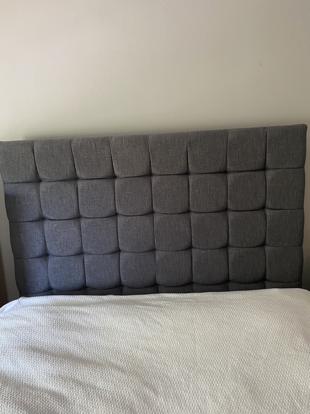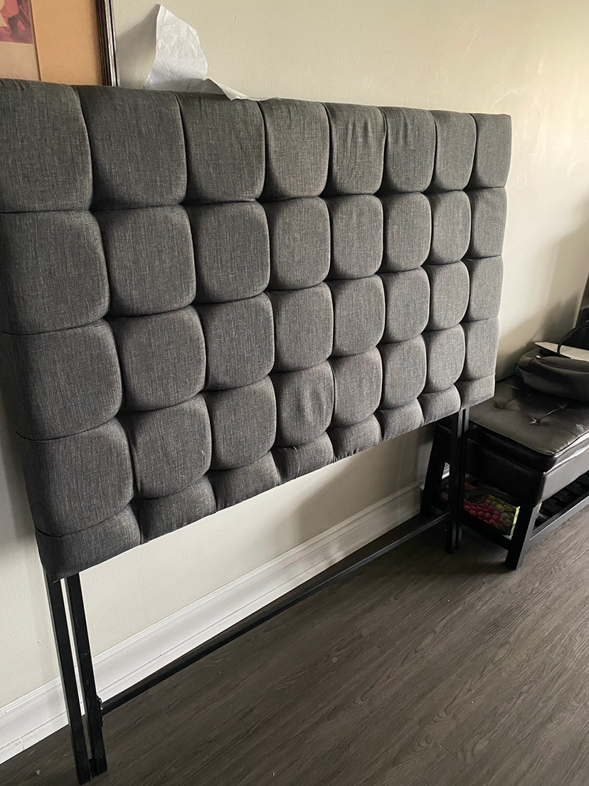Dark grey full headboard purchased several years ago from Hudson’s Bay for over $600. Very Good condition. Easy to attach to a full/double bed frame. Soft texture. Total length is approximately 56 inches. Upholstered part is 56x 33 inches. Near st Clair and Spadina