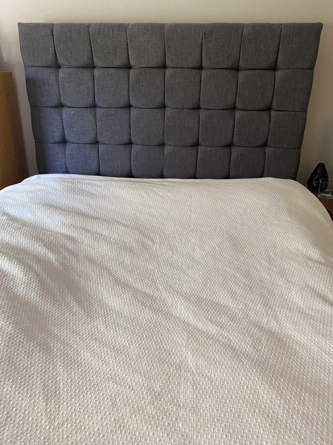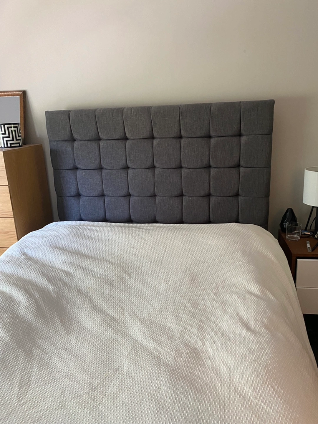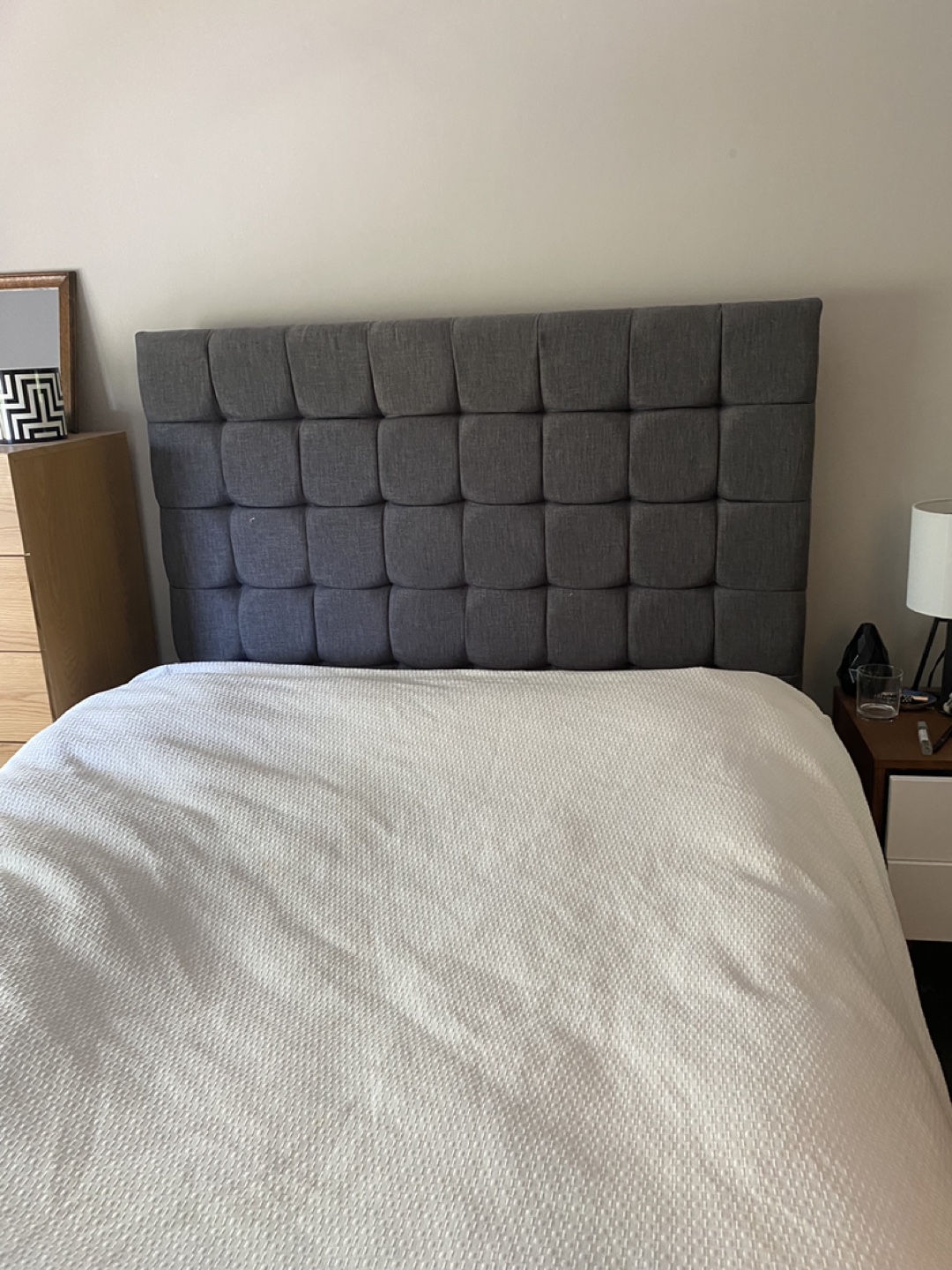 Dark grey full headboard purchased several years ago from Hudson’s Bay for over $600. Very Good condition. Easy to attach to a full/double bed frame. Soft texture. Total length is approximately 56 inches. Upholstered part is 56x 33 inches. Near st Clair and Spadina