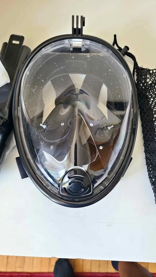 217Selling a black full-face snorkel mask (adult size). ✅ 180° panoramic lens ✅ Anti-fog / anti-leak design ✅ Comfortable elastic straps ✅ Comes with mesh carry bag Condition: Gently used, great shape. 💵 Price: $25 CAD 📍 Pickup in little italy Dundas and Bathurst