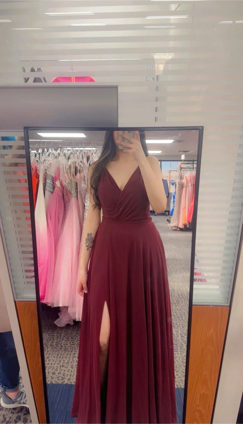 38Selling a lovely burgundy maxi dress! It has a flattering v-neck and a stylish slit. Perfect for a special occasion or a night out. I used it on my graduation, just wore once. It would be drycleaned and then given to you. Its a size medium and would hug your curves just perfectly. The back design is amazing as well. Its a great deal!