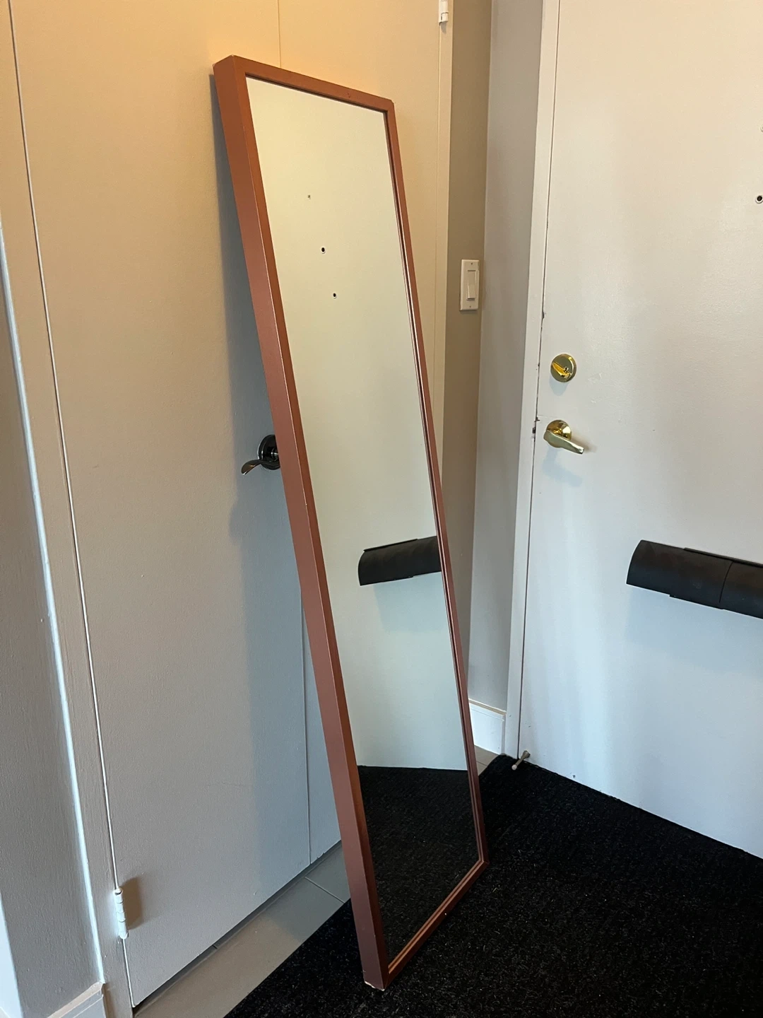 65Selling a full-length mirror with a rose frame. It's in good condition with some minor nicks and ready to brighten up your space! Perfect for bedrooms, hallways, or anywhere you need a quick check before heading out the door