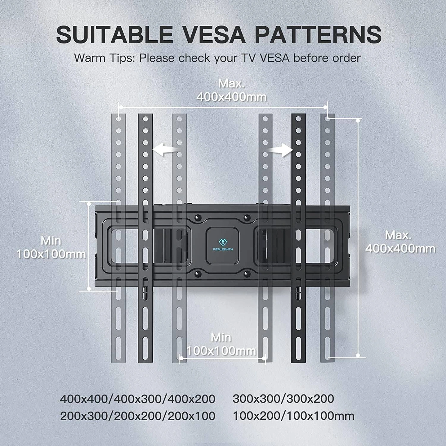 27Universal TV Compatibility - This TV mount suitable for TVs with VESA standard mounting holes from 100x100mm - 400x400mm. Compatible 26-65 inch TV such as Samsung, Sharp, Sony, Panasonic, Toshiba, LG, Philips, JVC, Thomson and all brands as long as they are VESA compatible. Please check the VESA pattern, weight, size of your TV before purchasing. Can be mounted to 8" to 16" wood stud walls and concrete/brick walls. Ultra Strong Double Arms - Equipped with stress tested load-bearing compression hinges to eliminate the risk of bending when fully extended, our dual articulating 6 arms is engineered for strength and will never bend. Features a reinforced wall panel to distribute the load and give you confidence in the installation of your TV (maximum weight 99 lbs). Optimized Viewing Experience - Change your viewing position with ease. Eliminate annoying glare with vertical tilt angle ranging from +5° to -12° and customize your viewing angle from anywhere in the room with ±45° horizontal full motion swiveling feature left to right (Maximum swivel angle depends on TV size) and rotates +/-3° to enhance viewing experience. For full detailed specification see images and description. REGULAR PRICE - $49.99 SALE PRICE - $29.99 - Taxes extra - Tech Source Canada Store hours: Mon-Fri 11:00AM - 6:00PM Sat 11:00AM - 5:00PM Sun 12:00PM - 5:00PM - Phone #: (647) 430-9028 - Limited quantity available - www.techsourcecanada.ca Tech Source 1150 Sheppard Ave W. North York
