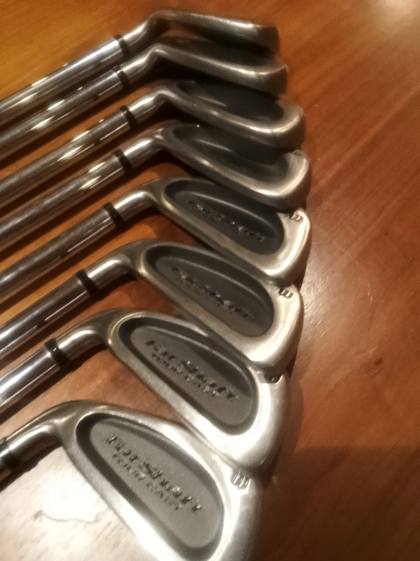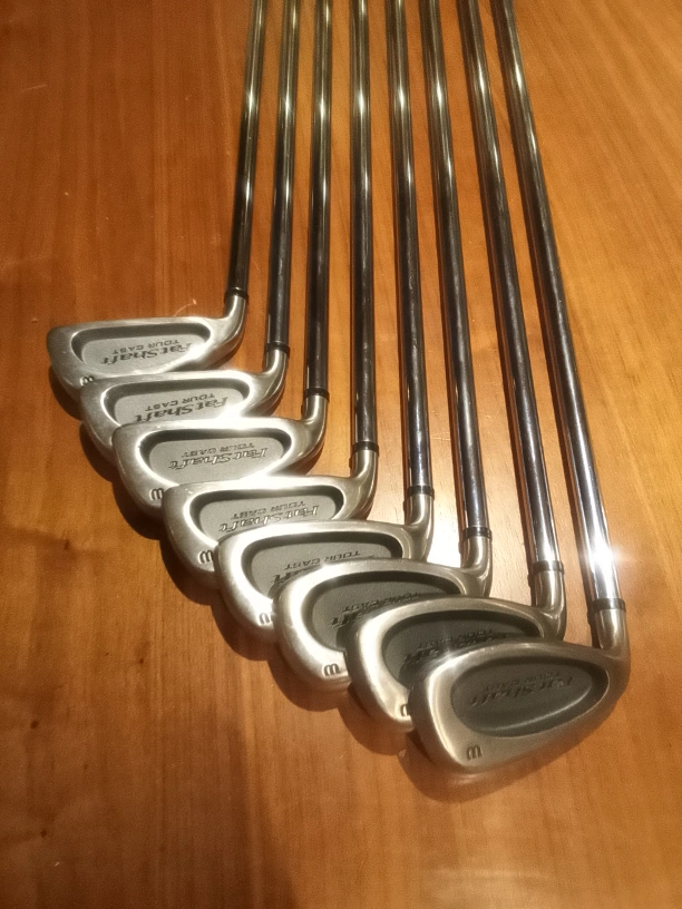 175A set Wilson Fat Shaft irons (golf clubs). Metal shafts. Black grips. Designed for playing a round of golf with friends or enjoying a solo game; you can easily find tranquility in the great outdoors. * With these Fat Shaft, it will add minimum 10 yards to your every single shot. *Left Handed * Cash & Pick up only.