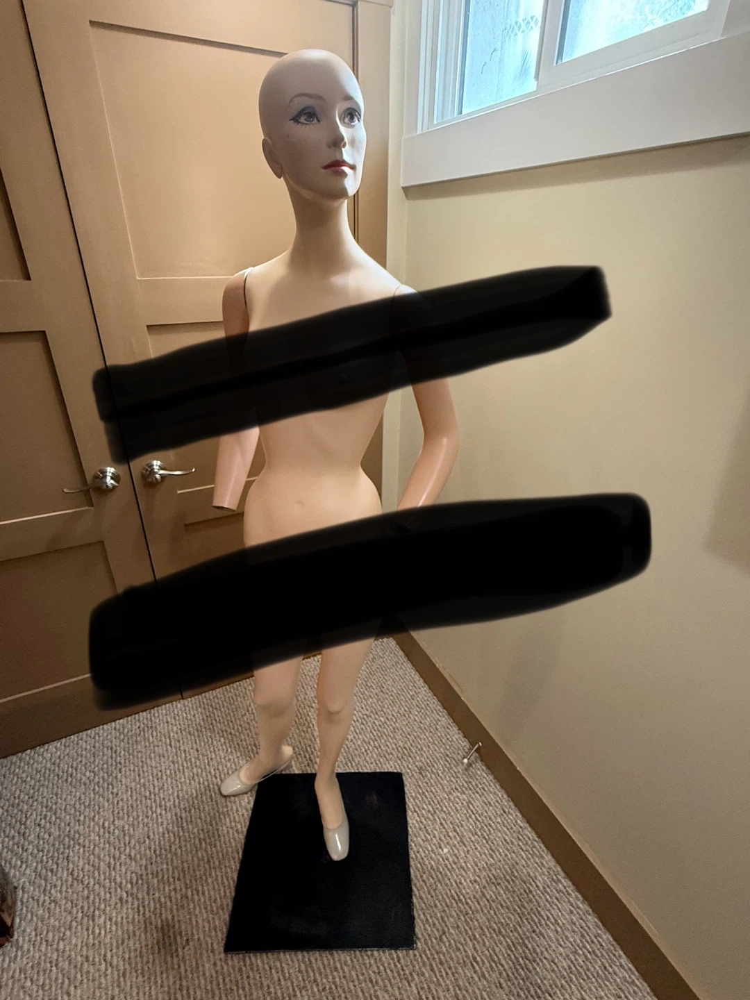 She is taken apart for easy transport, comes with a stand and shoes. She stands alone and comes apart for easy transport and dressing. Location for pick up in Westgate SW No holds No delivery Check out all of our ads
