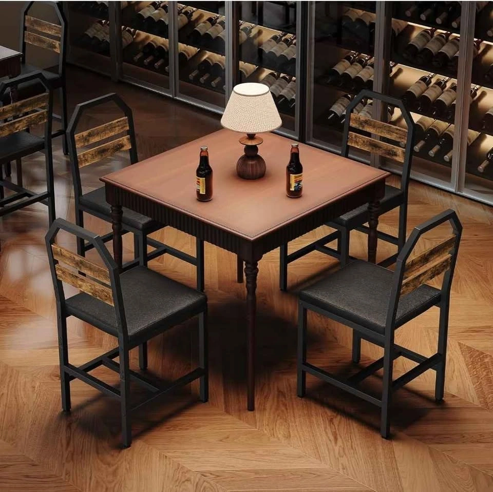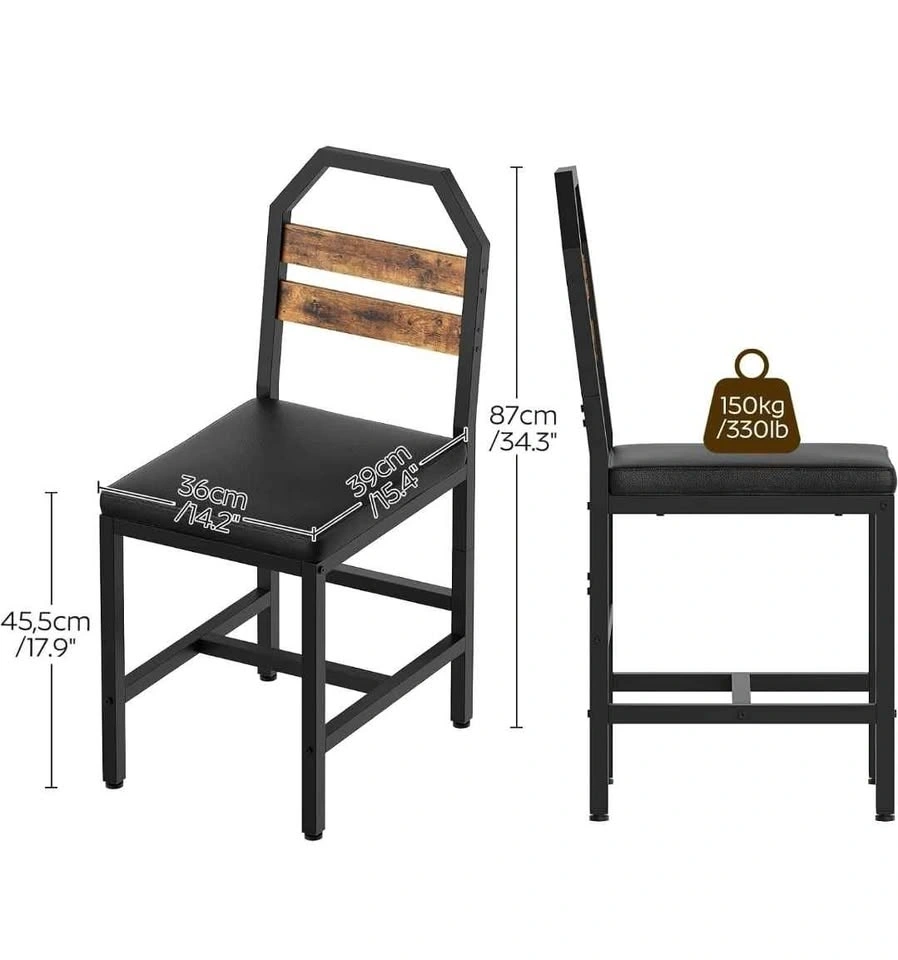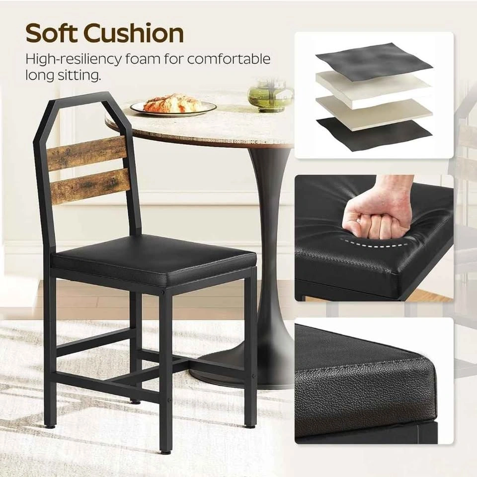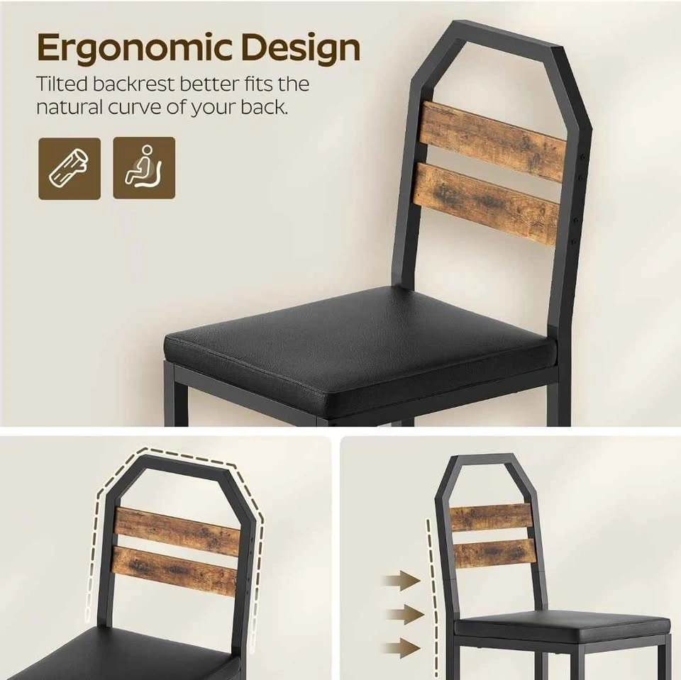 New and sealed set of 4 industrial-style kitchen chairs featuring a rustic brown and black finish. Each chair is designed with an ergonomic tilted backrest to fit the natural curve of your back and a soft, high-resiliency foam upholstered seat covered in waterproof PU leather for easy cleaning. Built with a sturdy metal frame and bottom crossbar, each chair is rated for up to 330 lbs and includes adjustable 360° feet to prevent wobbling on uneven floors. Retail Price: $200 CAD. Location: Sunnyside station area, NW (Downtown).