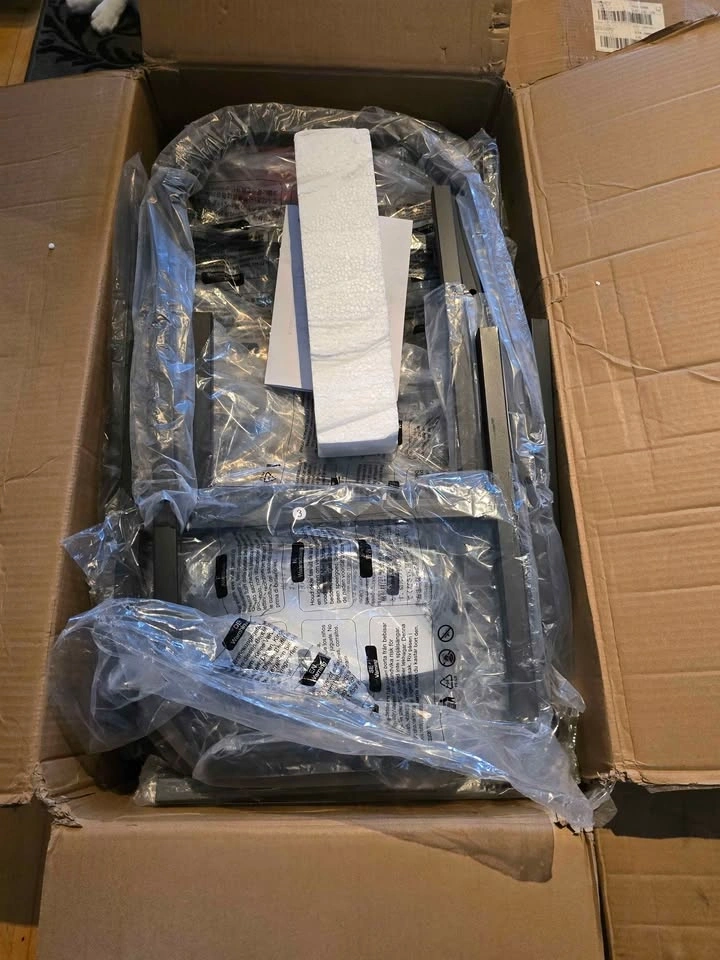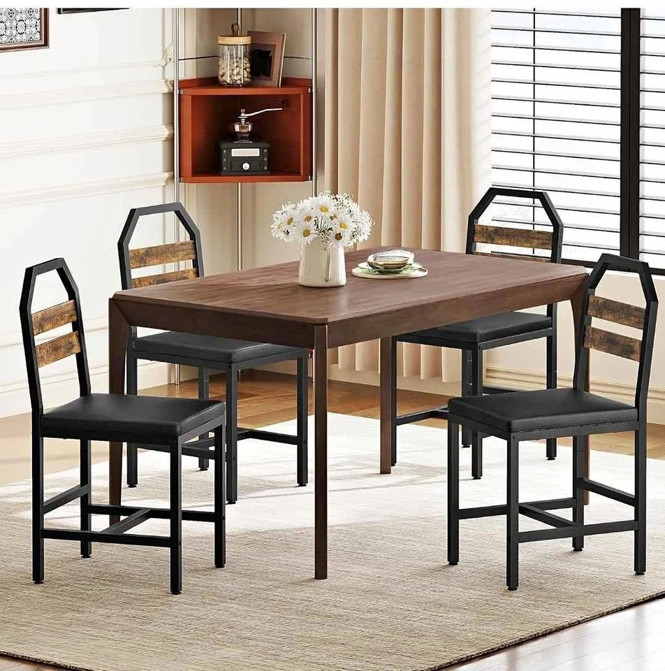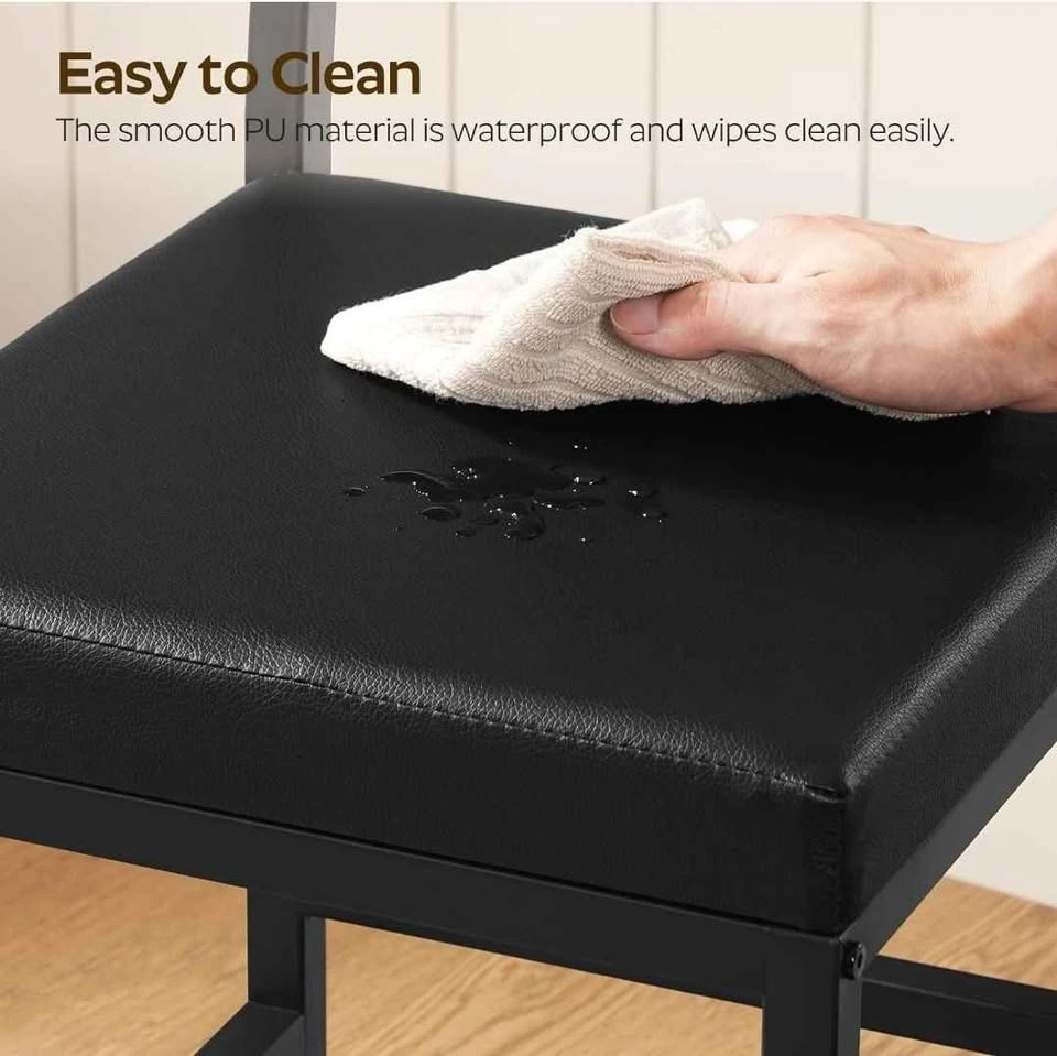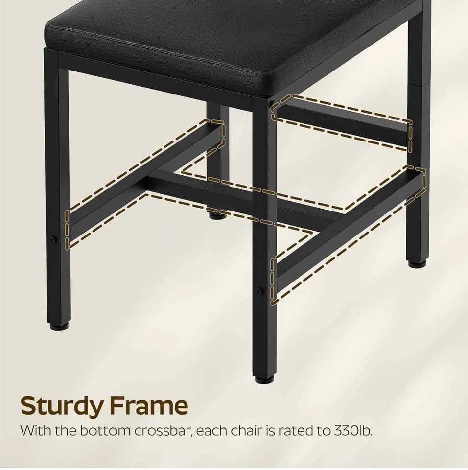 New and sealed set of 4 industrial-style kitchen chairs featuring a rustic brown and black finish. Each chair is designed with an ergonomic tilted backrest to fit the natural curve of your back and a soft, high-resiliency foam upholstered seat covered in waterproof PU leather for easy cleaning. Built with a sturdy metal frame and bottom crossbar, each chair is rated for up to 330 lbs and includes adjustable 360° feet to prevent wobbling on uneven floors. Retail Price: $200 CAD. Location: Sunnyside station area, NW (Downtown).