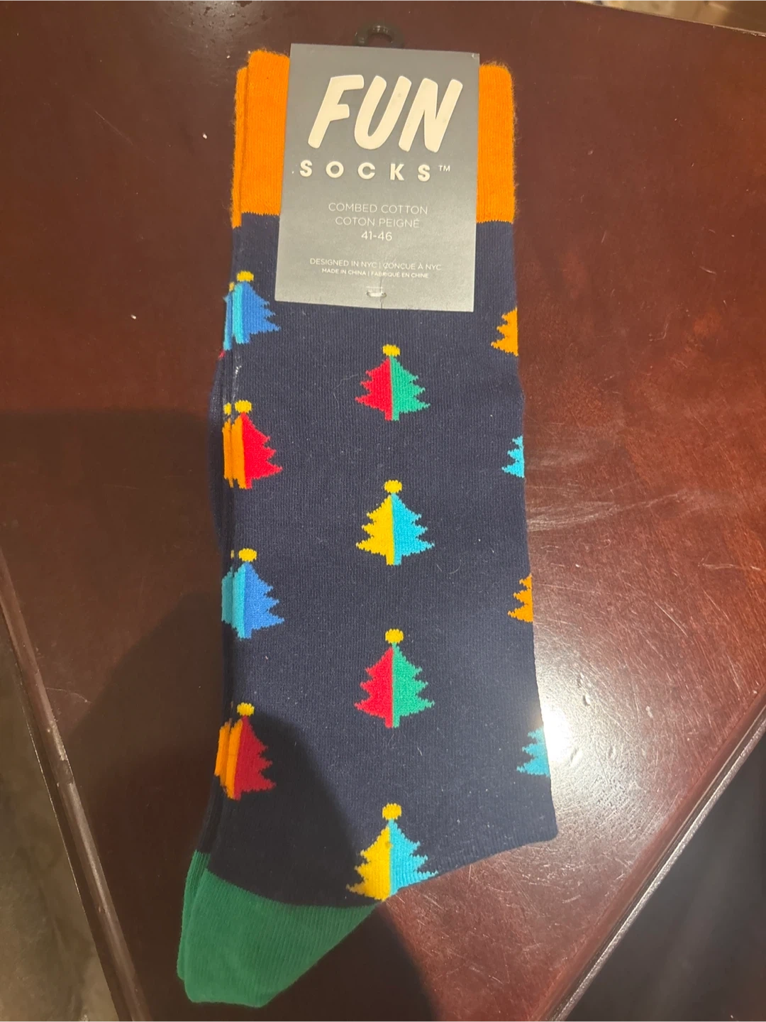 52These Fun Socks are made of combed cotton and are size 41-46! They have a fun Christmas tree design on them