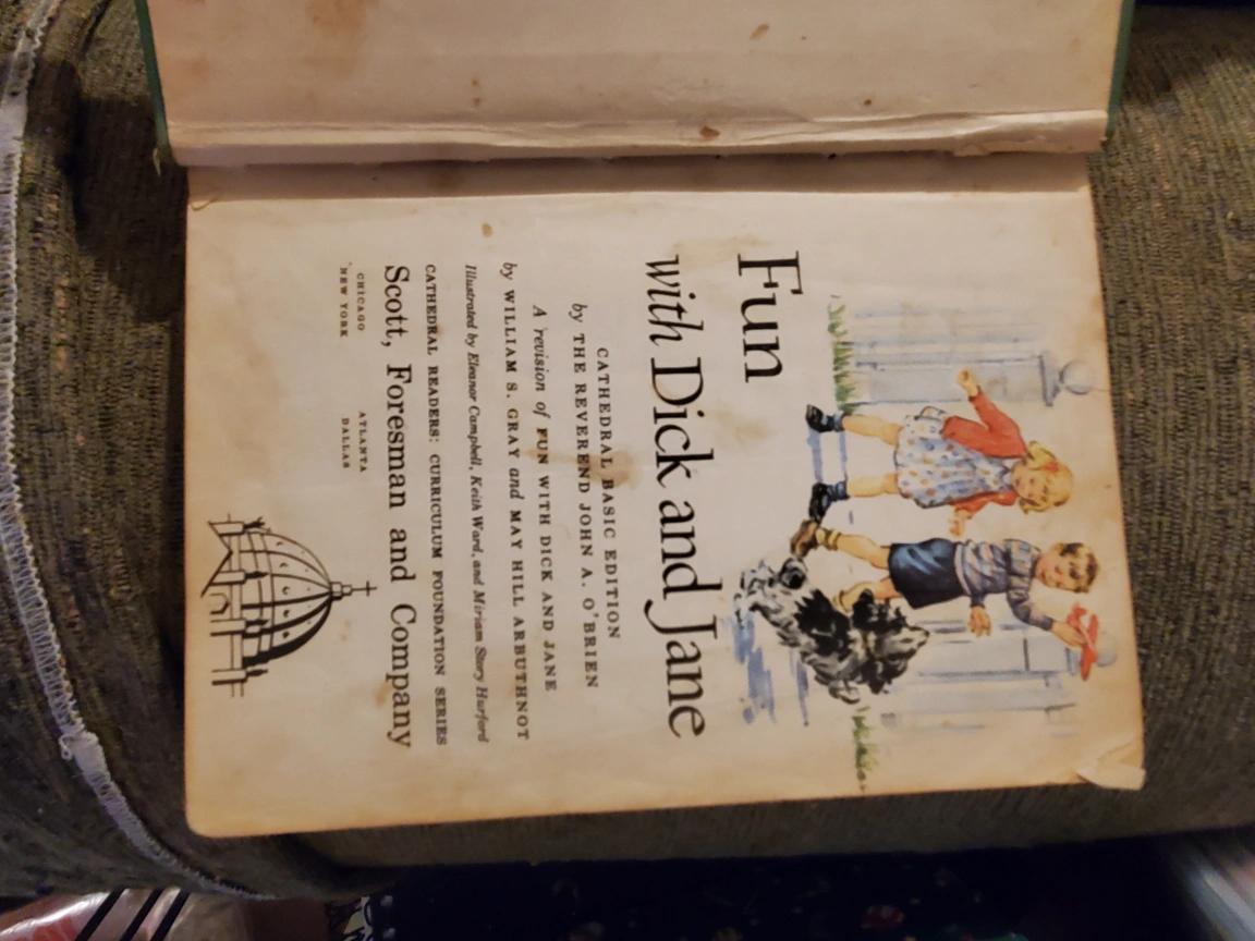 Selling a vintage copy of "Fun with Dick and Jane", a Cathedral Basic Reader. This book is a revision by William S. Gray and May Hill Arbuthnot. Illustrated by Eleanor Campbell, Keith Ward, and Miriam Story Hurford. A charming piece of nostalgia!