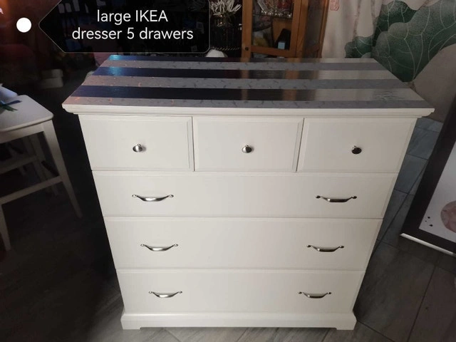 This is a large IKEA dresser with 5 drawers, providing ample storage space. Excellent condition and is fully functional. Approximate dimensions: - Width: 43 inches - Depth: 20.5 inches - Height: 44 inches Looking to give this dresser a new home! If the ad is up, it's available! heavy item, pu near chinook mall area