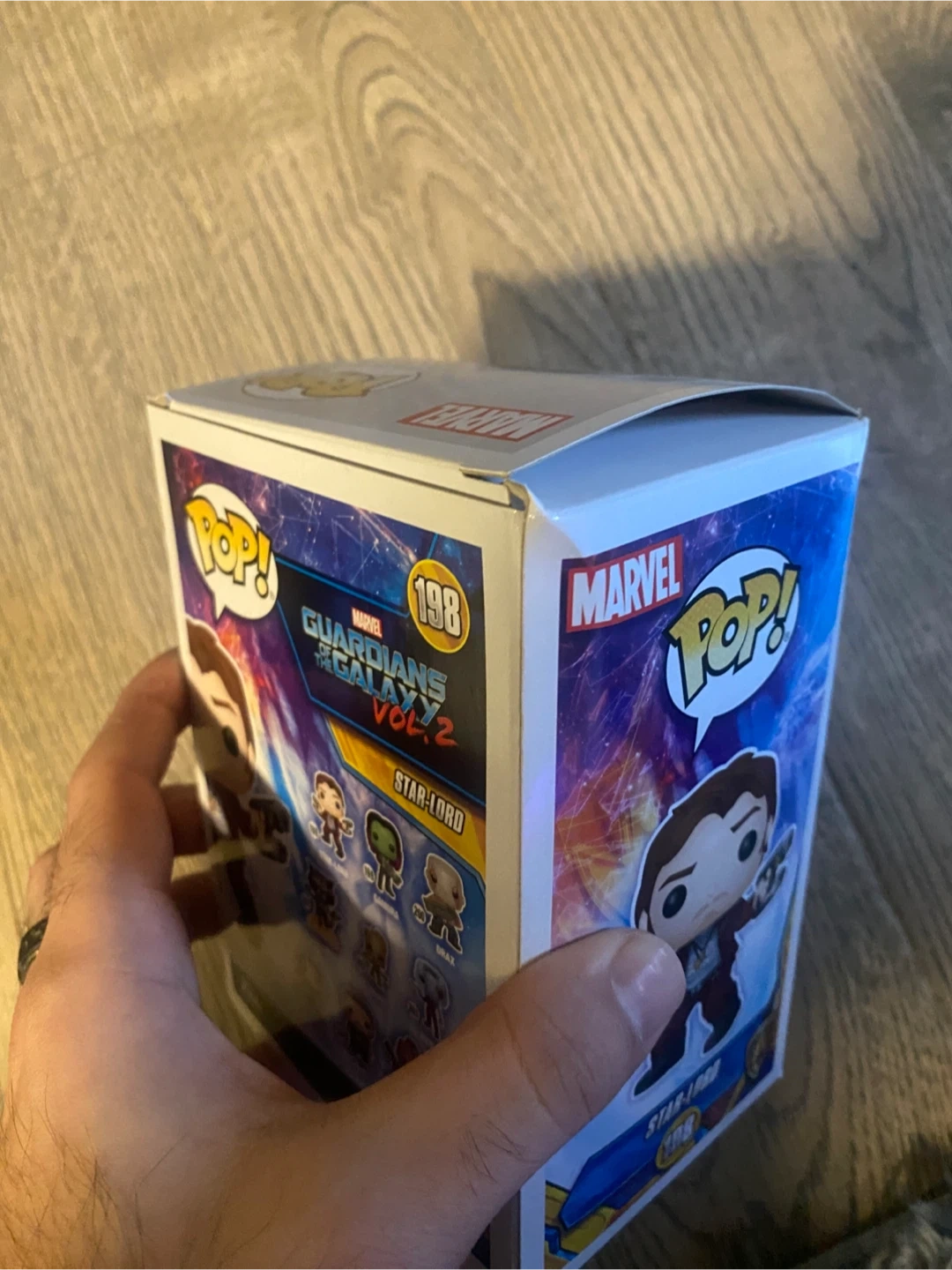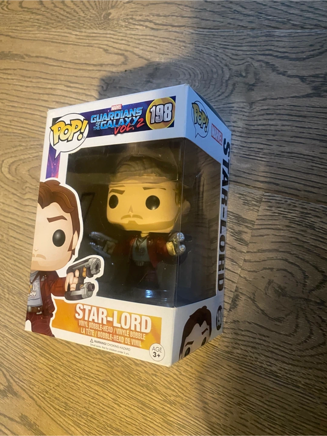 95Selling a Funko Pop! figure of Star-Lord from Marvel's Guardians of the Galaxy Vol. 2. It's number 198 in the series and comes in its original box. Great for any Marvel or Funko collector! Box slightly damaged from moving, but figure never removed. was trying to keep an unopened collection for resale value, no longer interested in holding onto them
