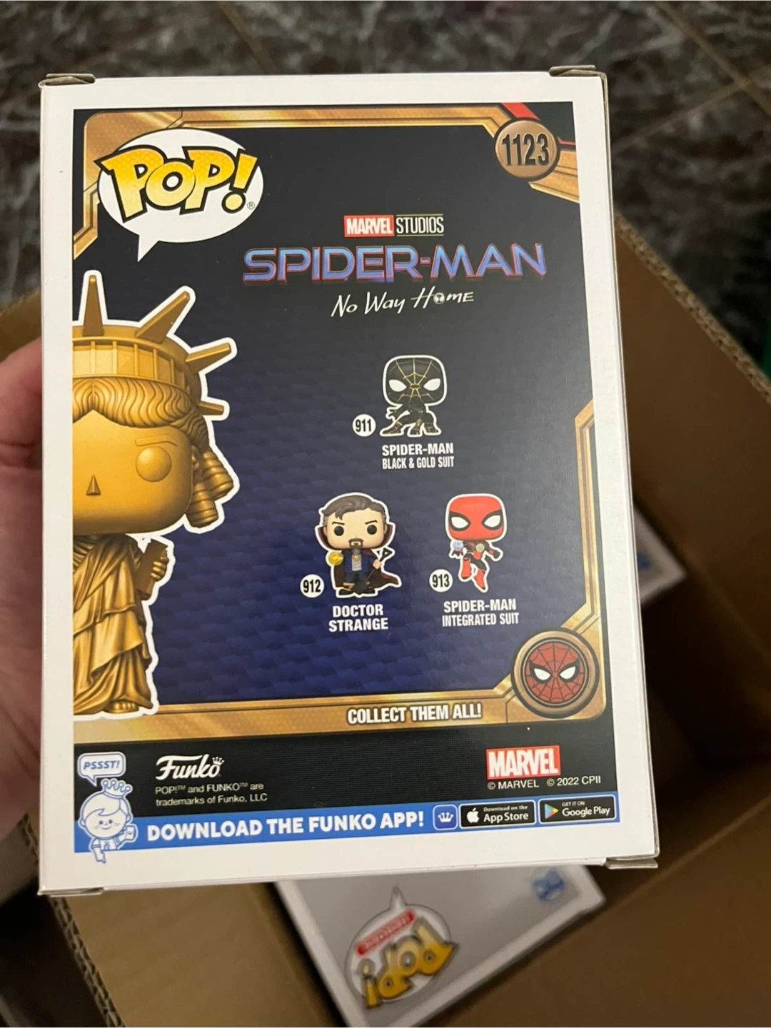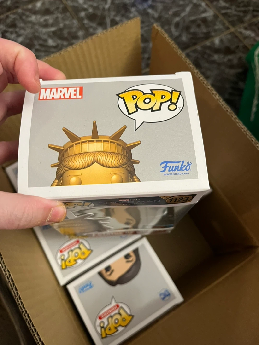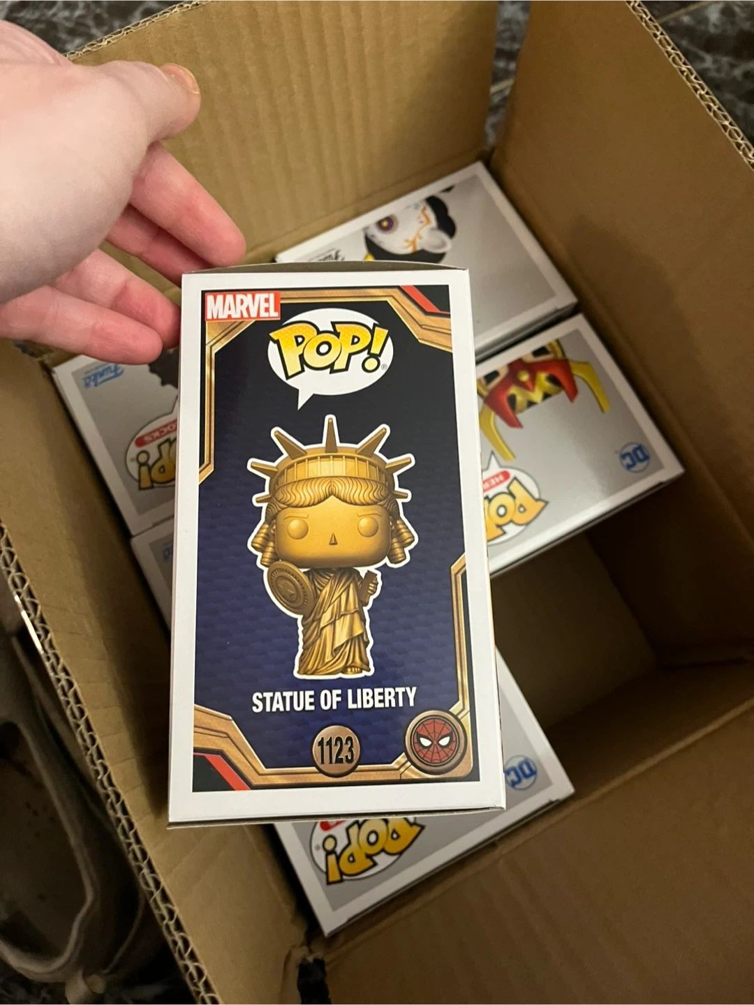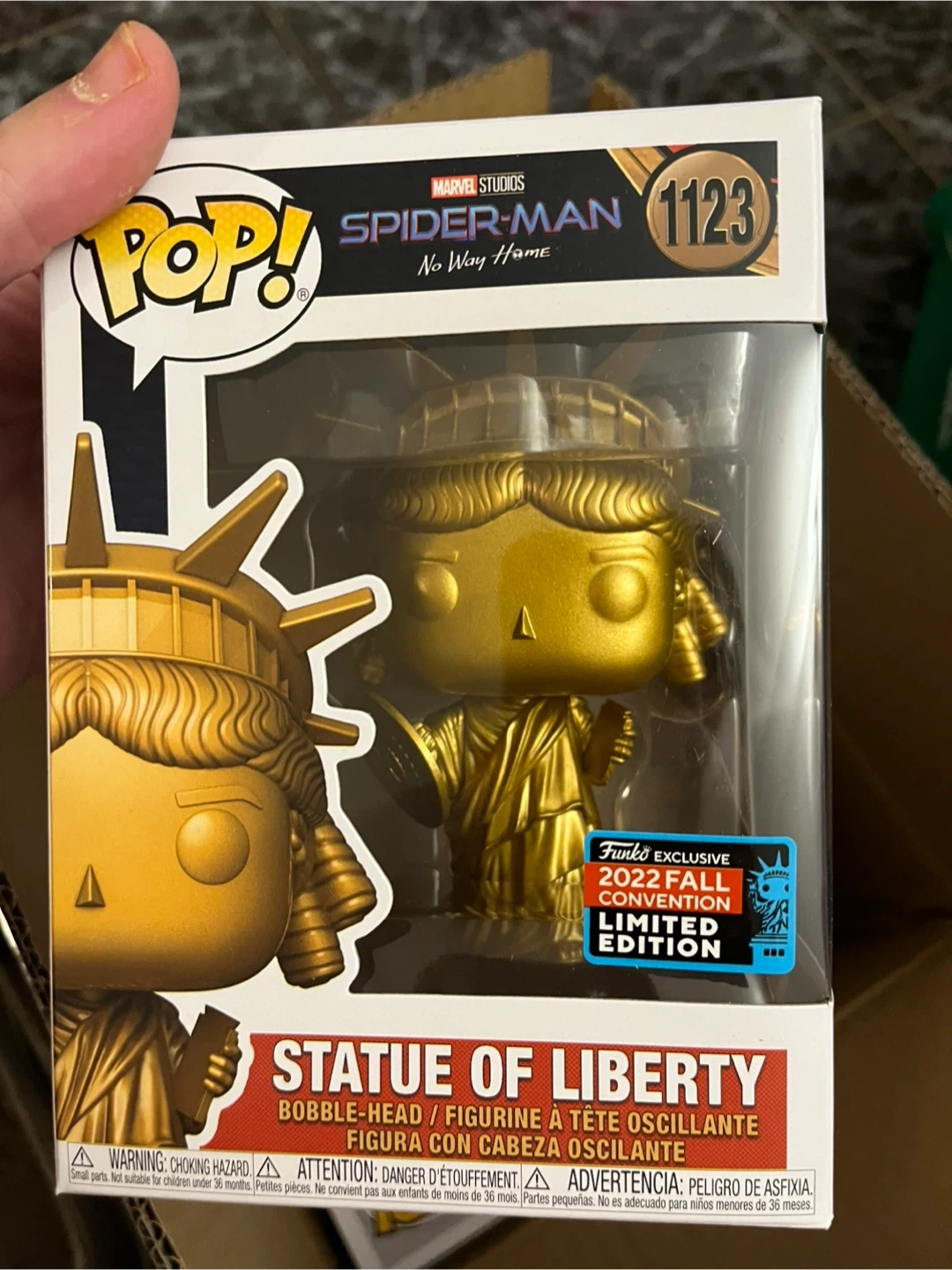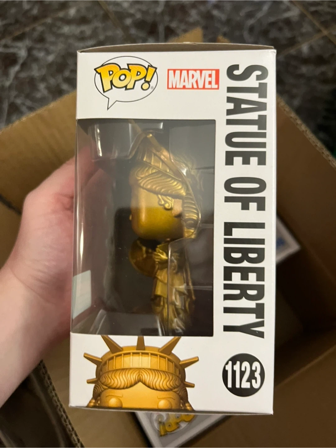 123Selling a Funko Pop! Marvel Statue of Liberty, number 1123. It's in great condition and comes in its original box