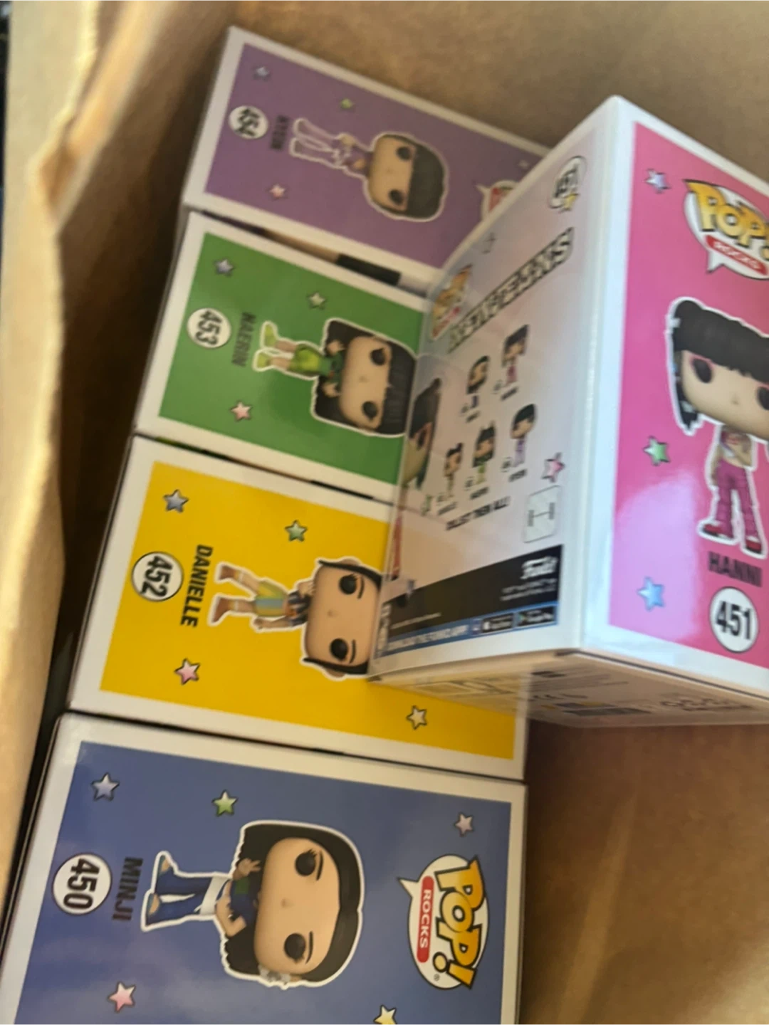15Selling a complete set of Funko POP! NewJeans figures! Includes all 5 members: Minji, Hanni, Danielle, Haerin, and Hyein. Each figure is in its original box and in excellent condition. Perfect for any NewJeans fan or Funko collector! Pickup/cash only