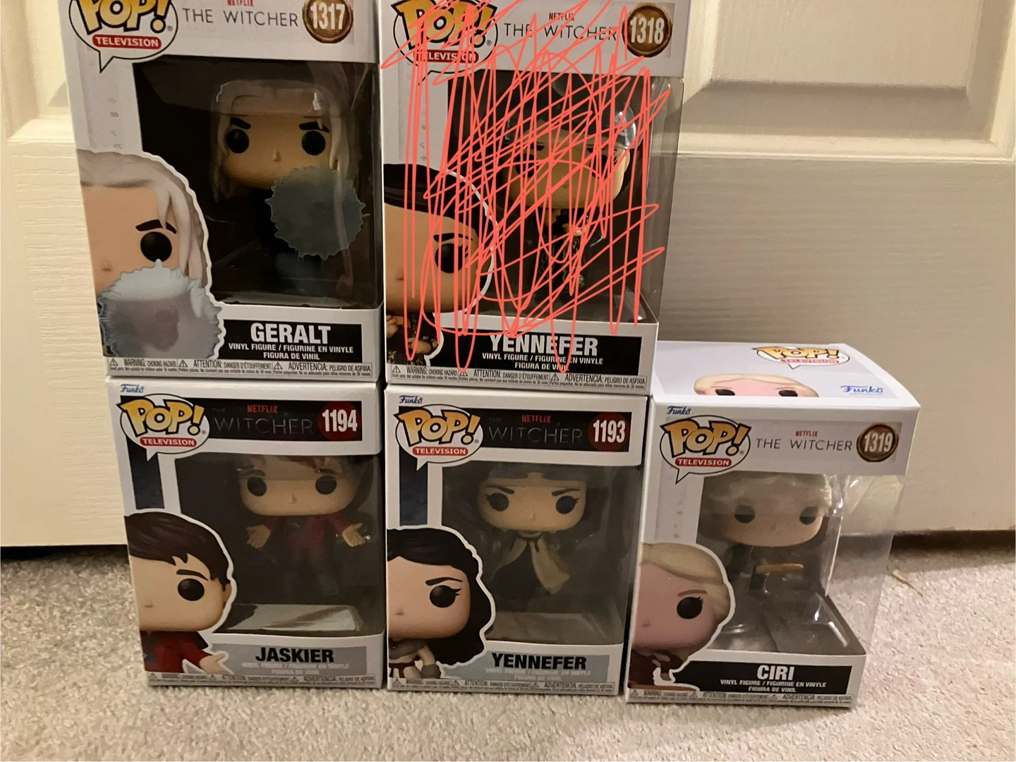 10Selling a collection of Funko Pop! Television figures from The Witcher series! Included are Geralt (1317), Jaskier (1194), Yennefer (1193), and Ciri (1319). All figures come in their original boxes Price for all of them, message for seperate purchase