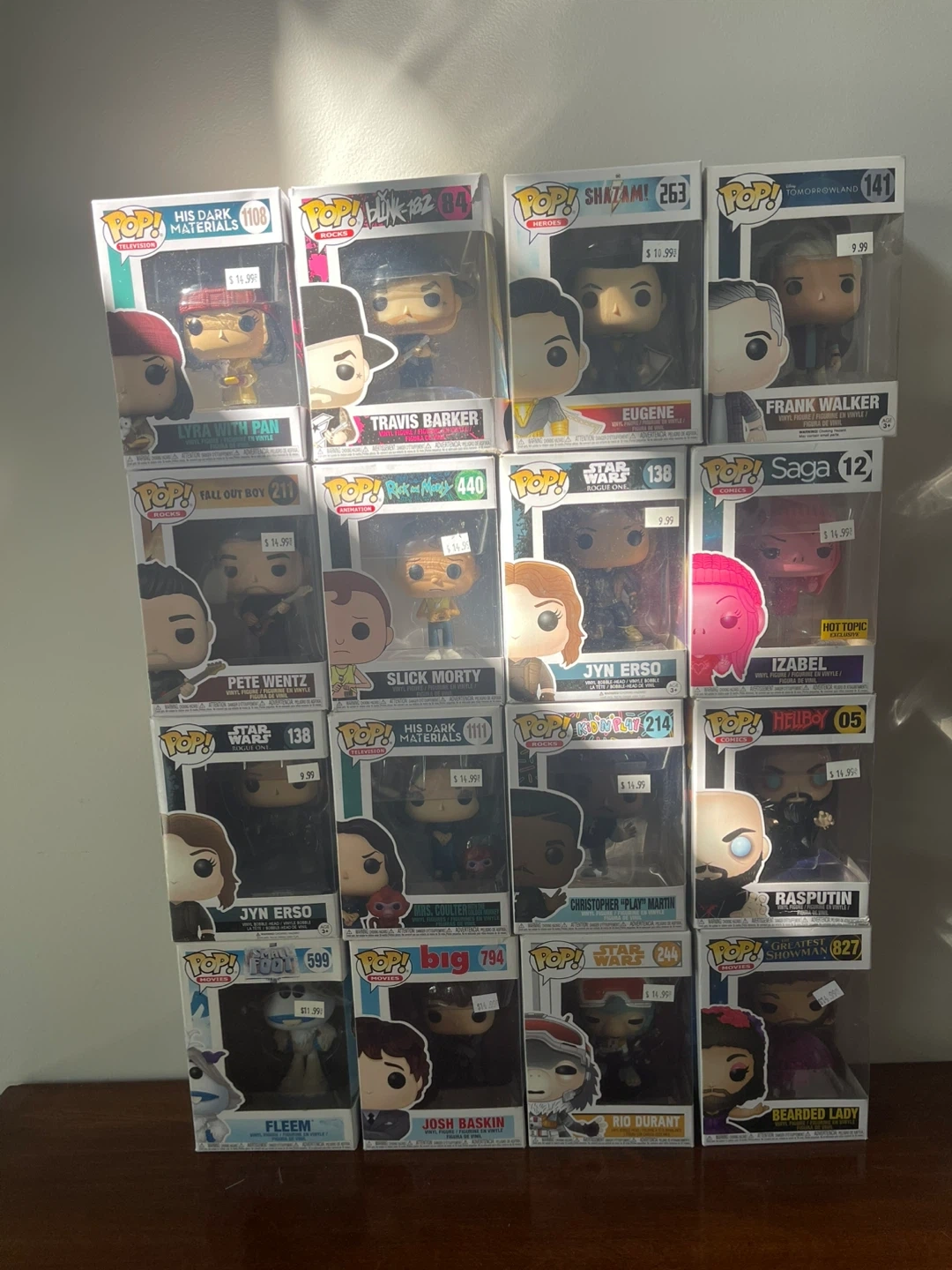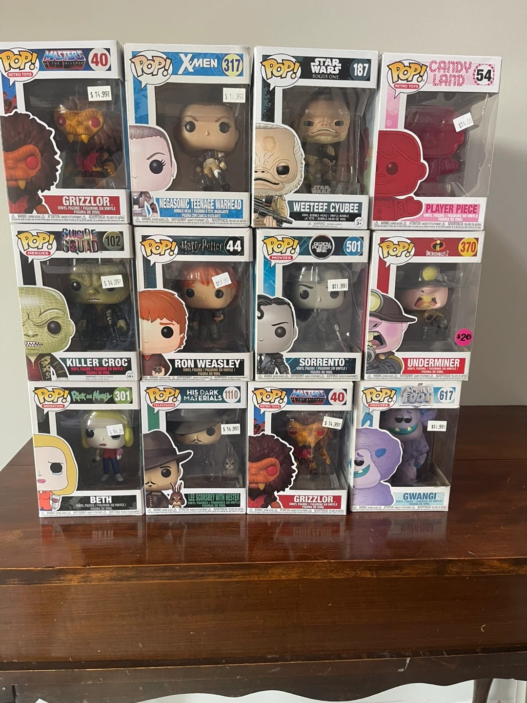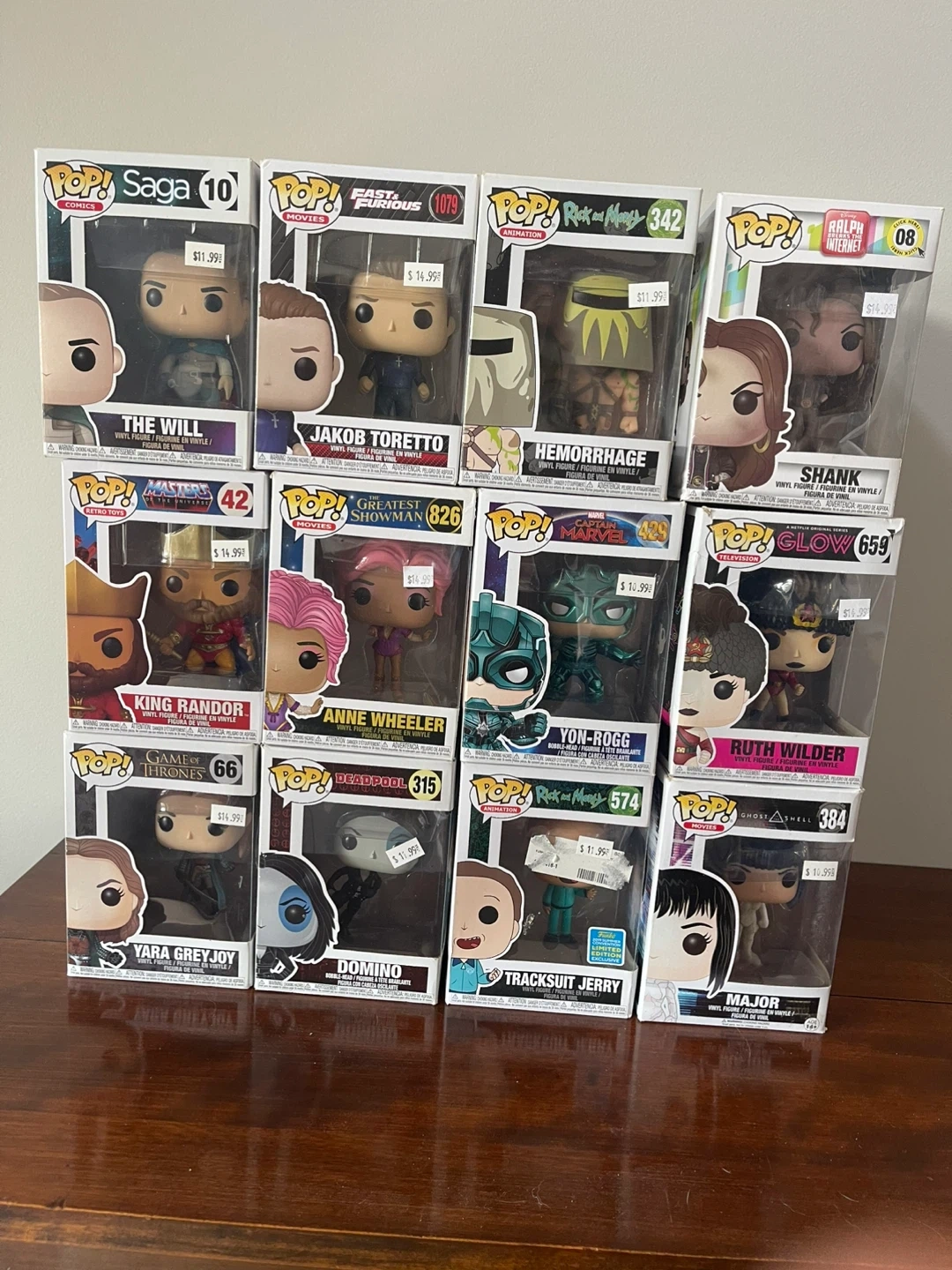 15Selling a variety of Funko Pop! vinyl figures. Great for collectors or fans of various franchises. Each figure is in its original box and in great condition. Prices are marked on each box in the photos