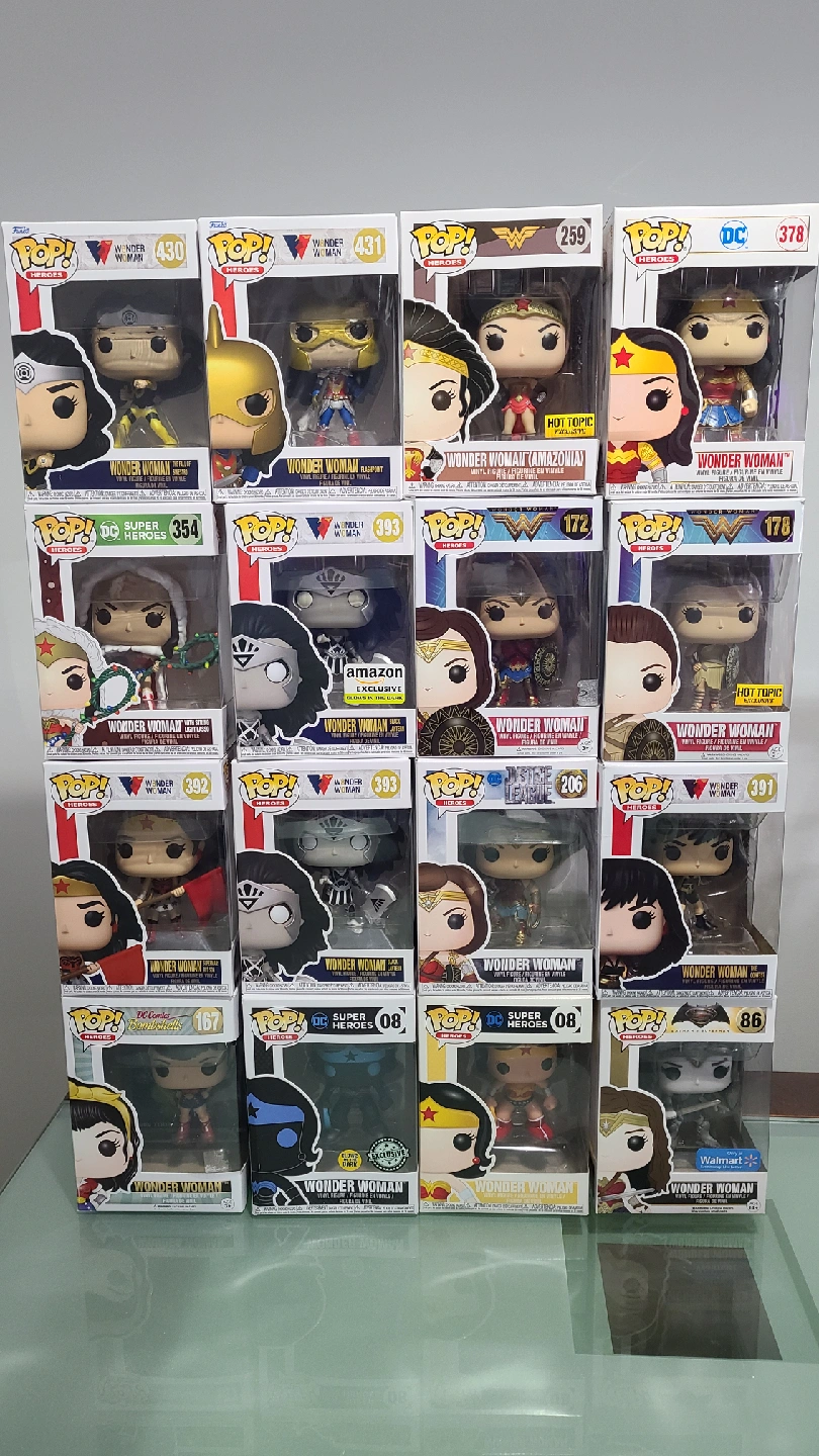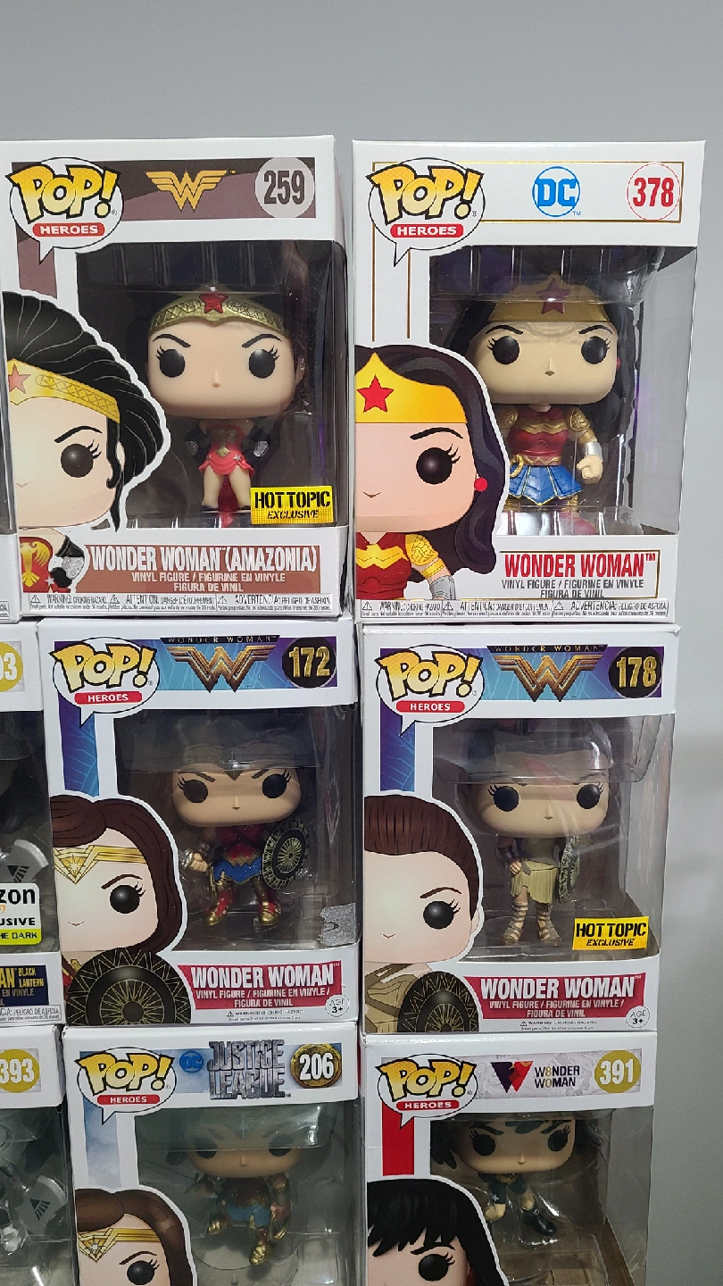 65Selling a collection of Funko Pop! Wonder Woman vinyl figures! These figures are all in their original boxes and in great condition. Perfect for any DC Comics or Wonder Woman fan! There are several different versions and exclusives. Prices for each.