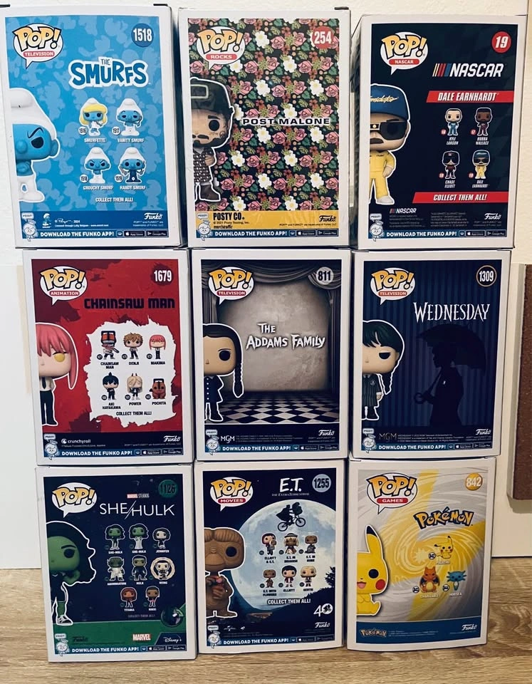 For sale, random assortment of Funko Pops! Take all 9 for $30 Or Individually (see prices) All in great condition. Makima (Chainsaw Man) #1679 $15 E.T. With Flowers #1255 $5 Pikachu (Pokémon) #842 $5 Wednesday Addams #1309 $10 Wednesday Addams (The Addams Family) #811 $10 Grouchy Smurf (The Smurfs) #1518 $5 She-Hulk #1126 $5 Post Malone #254 $20 Dale Earnhardt #19 $10 Pickup Only, Vancouver Downtown No Trades Cash Payment or E transfer upon pickup