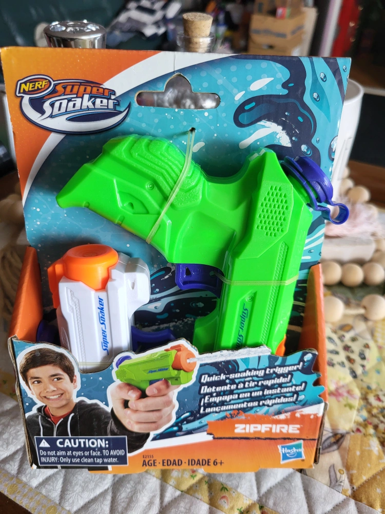 Brand new Nerf Super Soaker Zipfire water gun! Ready for some fun in the sun? This water blaster features a quick-soaking trigger for rapid fire action. Recommended for ages 6+