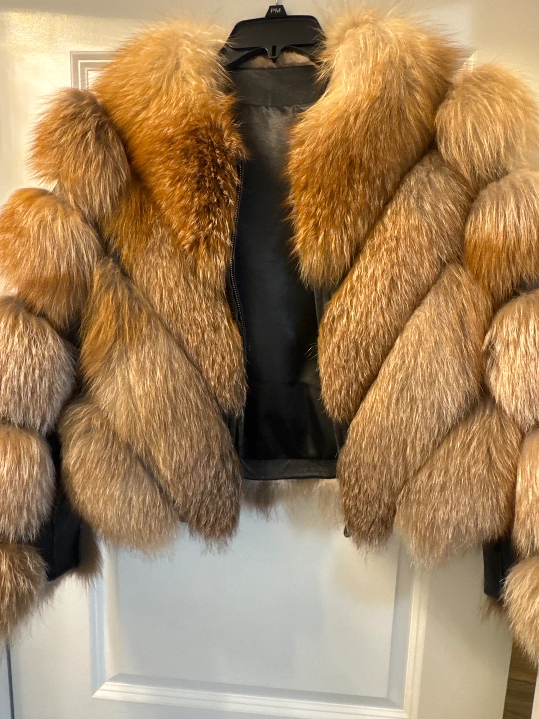 0Selling a fur jacket in great condition. It features a unique design with fur detailing throughout the jacket. Perfect for staying warm and stylish during colder weather!