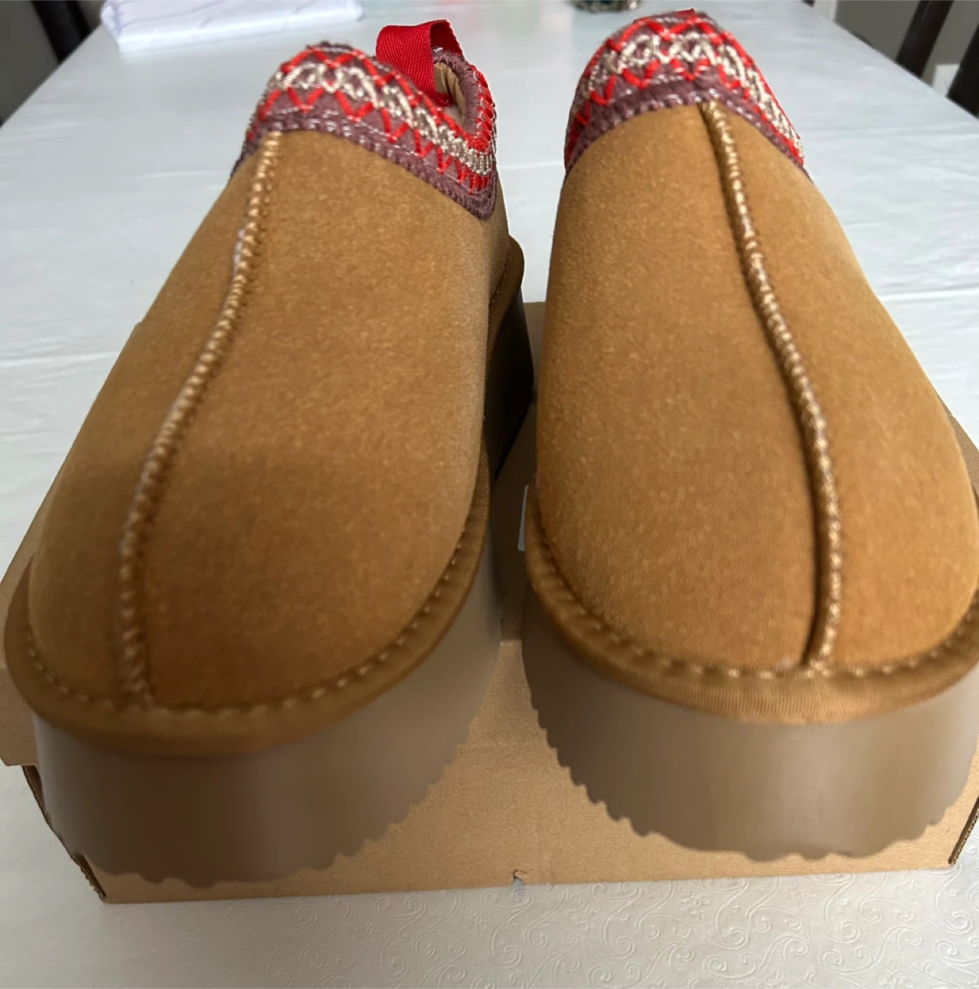 10These fur lined mini boots are super comfy and in excellent condition! They come with the original box. The colour is a beautiful tan. They are the most comfortable and the most versatile pair of shoes you will own. They are perfect for wearing around the house or running errands! Size 41