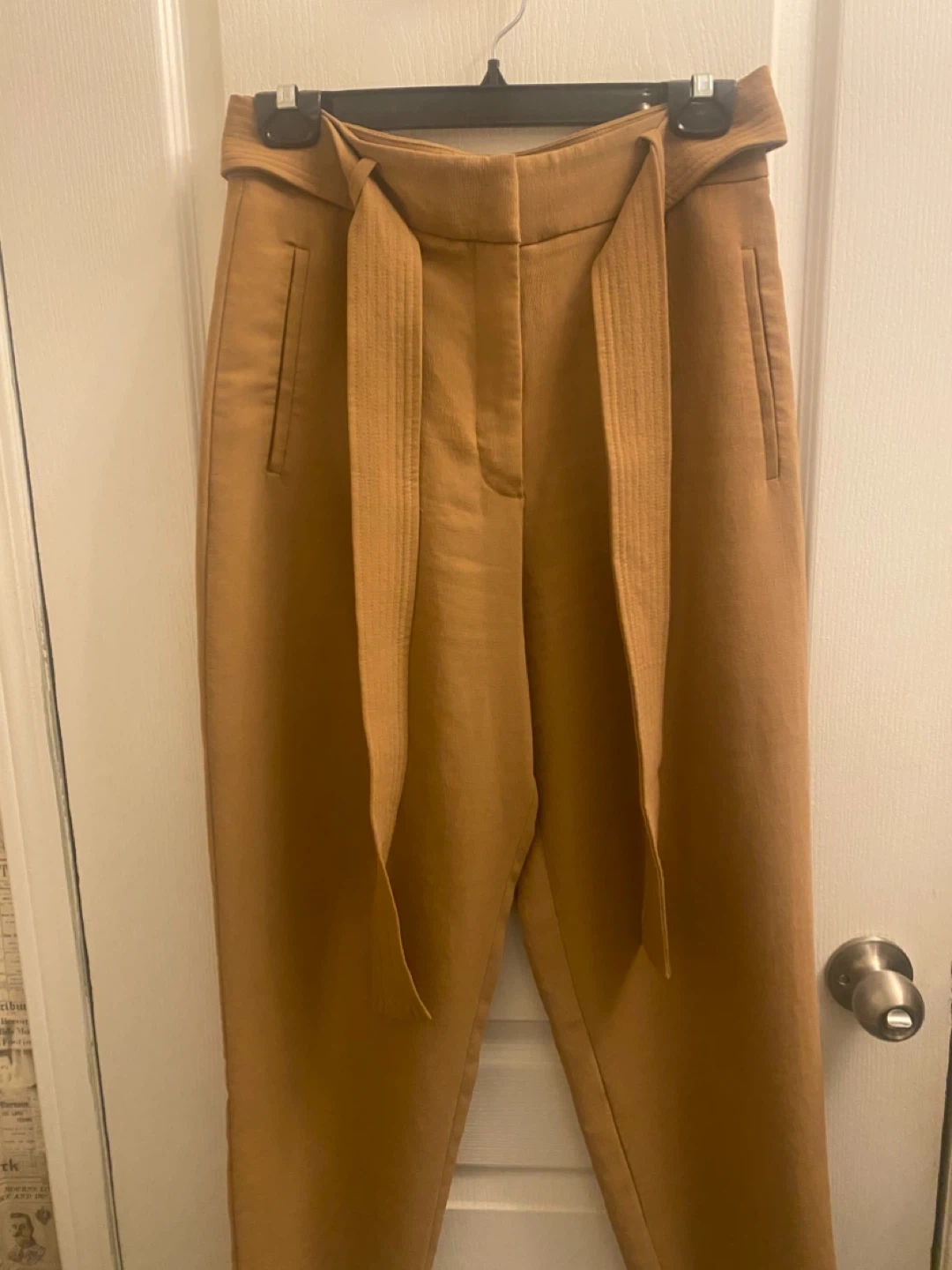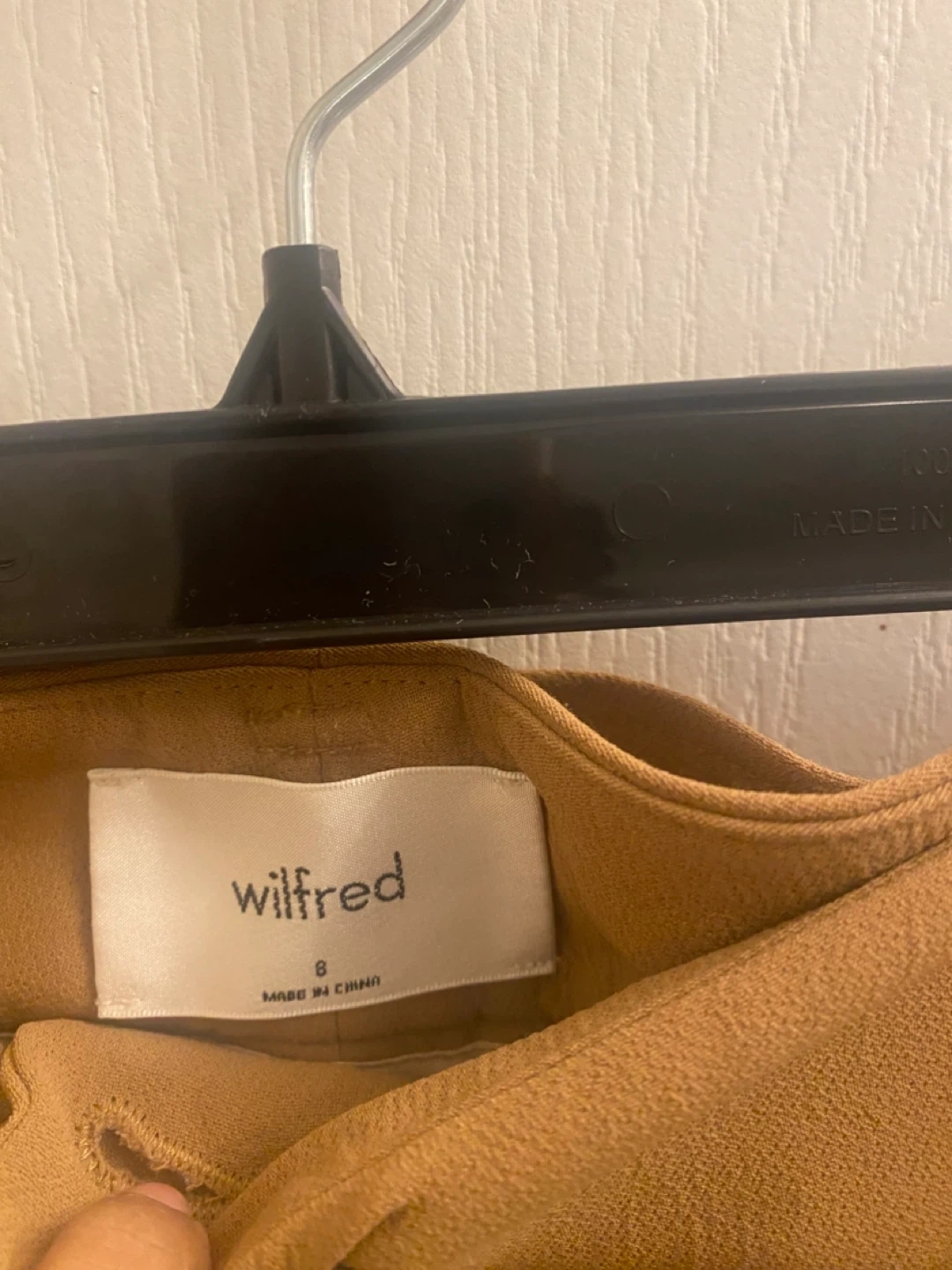 Elevate your wardrobe with these beautiful Wilfred dress pants in a rich cognac tone. Crafted from a smooth, comfortable fabric with a flattering drape that complements the body effortlessly. Like-new condition and perfect for a chic work look or dressed down for everyday style.