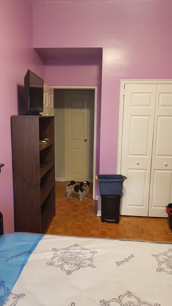 711 furnished room for rent in 2 bedroom apartment. Long term, fem tenant preferred. Available now, shared accommodation for single occupant, must like dogs. Sorry no parking space available bus person only, close to airport & humber college fem pref. Must be employed full-time, respectful and clean, internet and utilities included on third level of a 3 floor walk up reply with name, age, employment information, price minimumaly negotiable, text me Frank or reply through the ad here