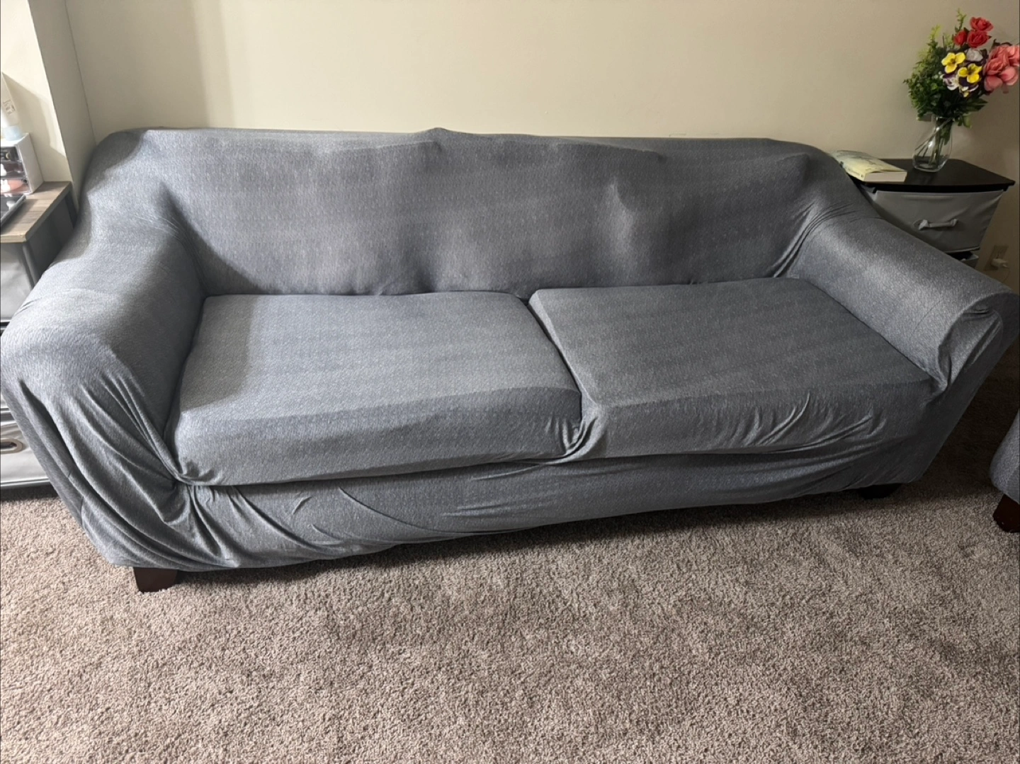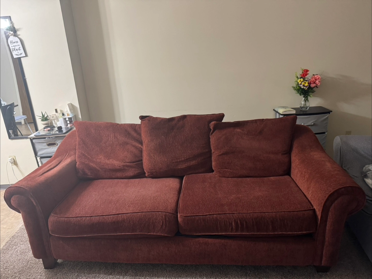 Selling a furniture lot including a sofa, chair, and dresser. All items are in good condition and ready for a new home. Perfect for someone starting out or looking to furnish a space on a budget