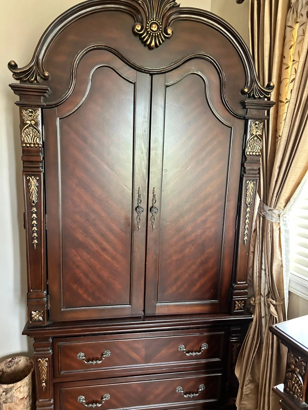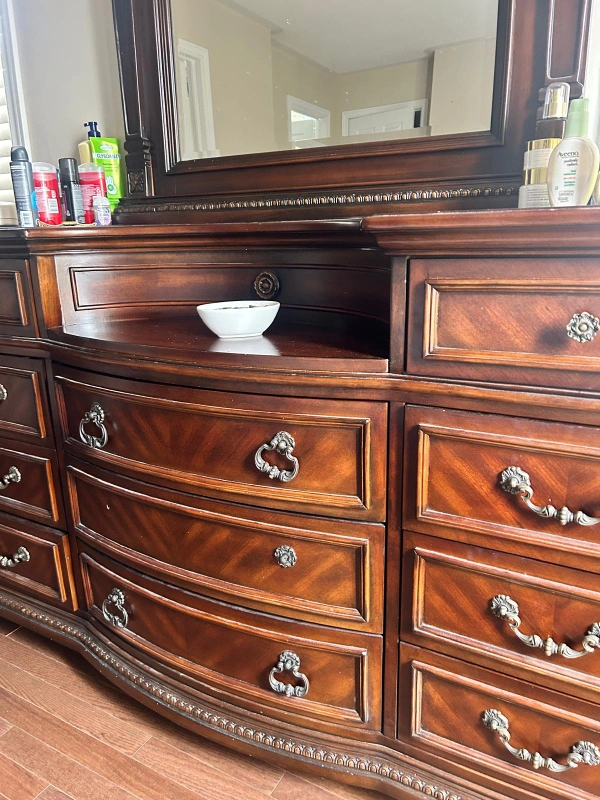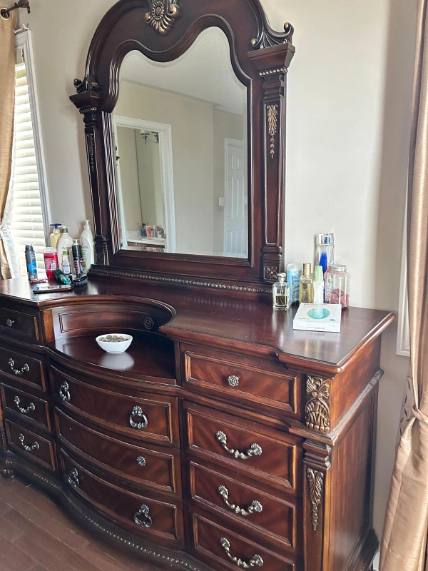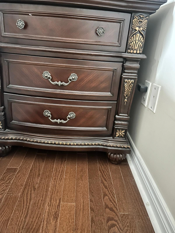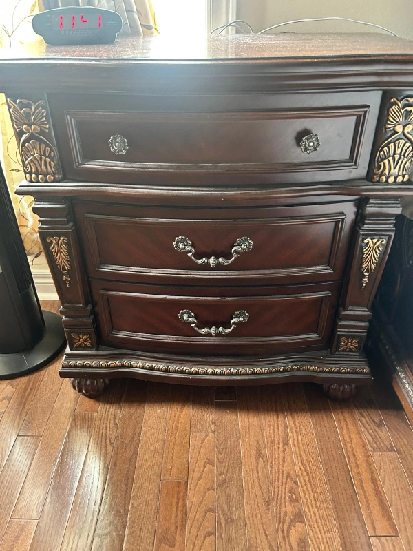 Gray Upholstered Bed Frame with Drawers (Queen)