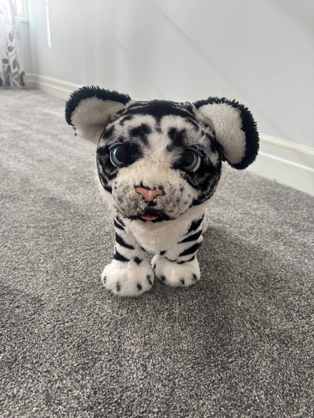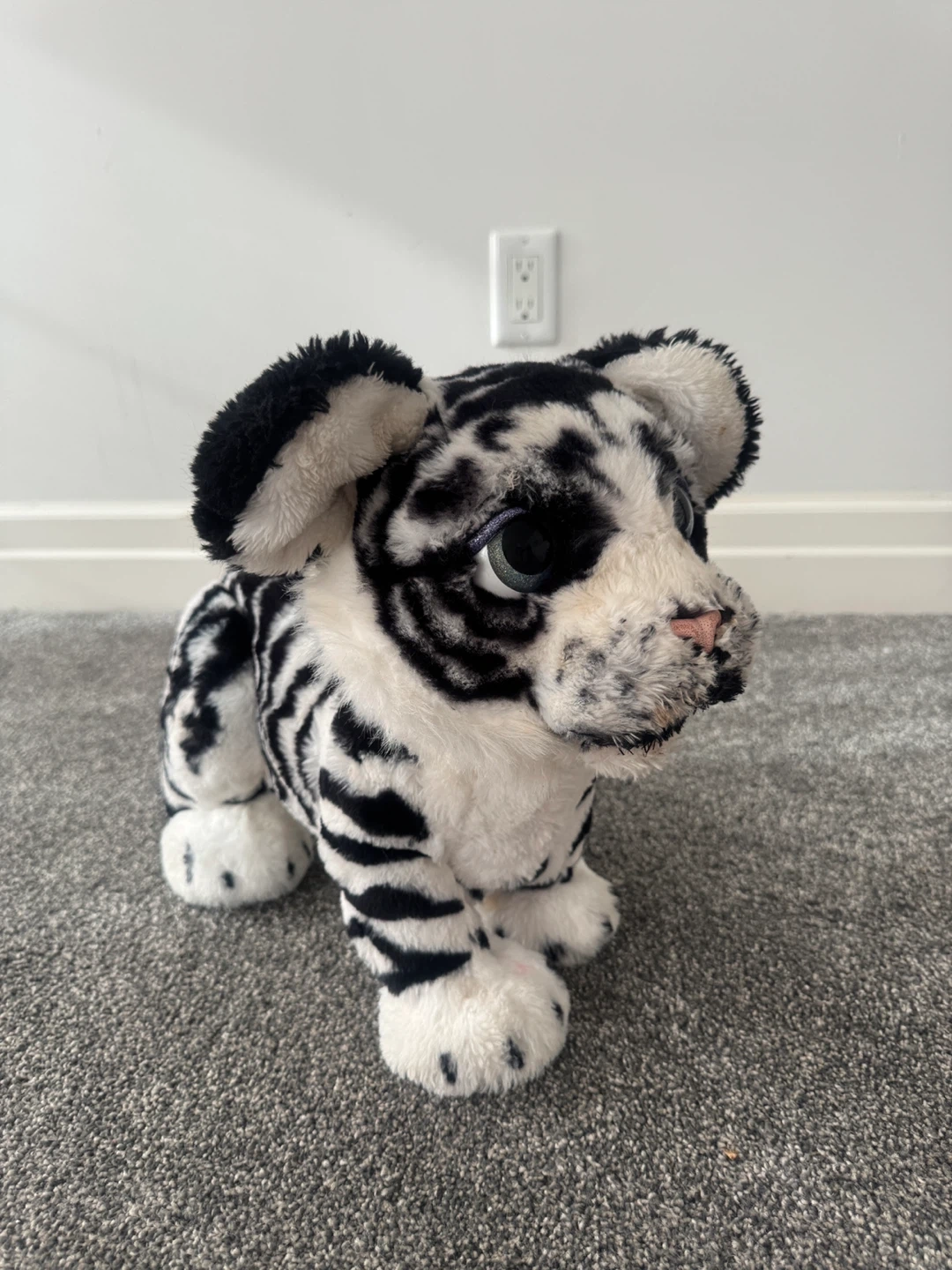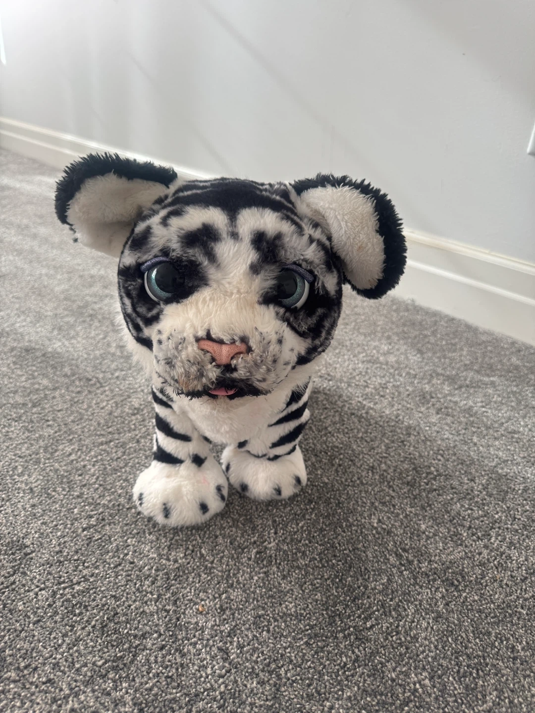 11This is a FurReal Cubby, The Curious tiger Interactive Plush Toy. It's in good condition and ready for a new home! This interactive toy is perfect for kids who love animals and enjoy imaginative play. It responds to touch and sounds, making it a fun and engaging companion