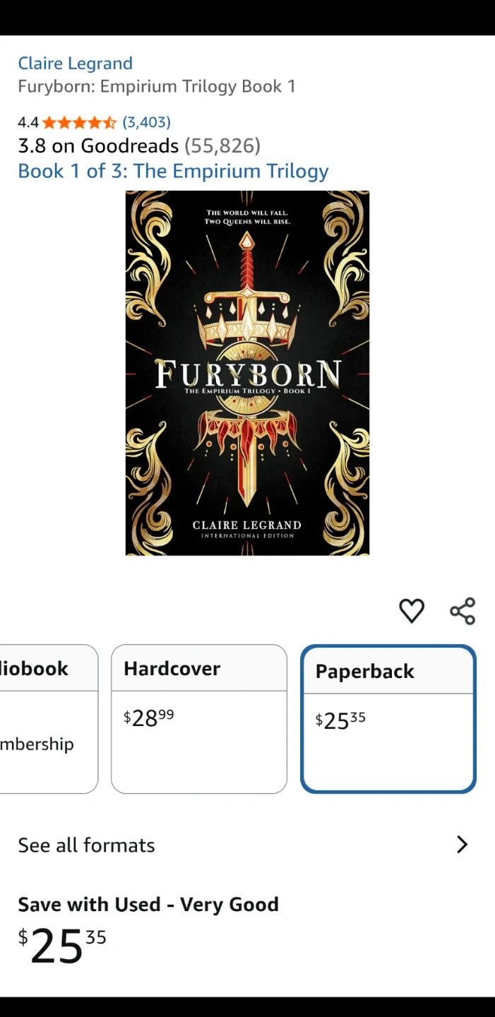 105Selling a paperback copy of Furyborn by Claire Legrand, Book 1 of The Empirium Trilogy. It's a New York Times Bestseller and a great read for fantasy lovers it's available and I assure you the ad will be immediately removed when it's sold. Pick up is at college station or 80 vanauley street