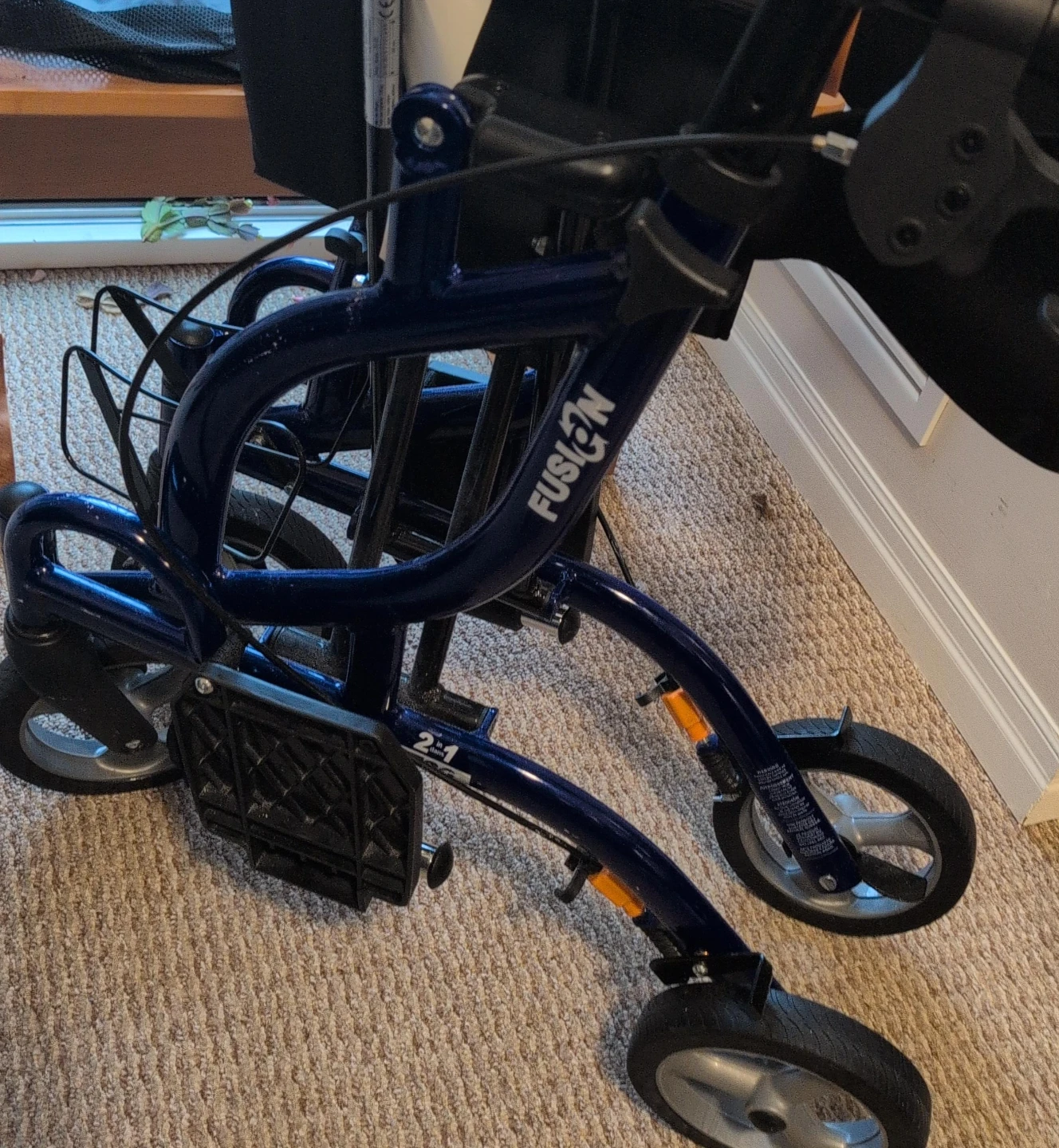 45Selling a Fusion 2-in-1 rollator walker in a lovely blue colour. It's in great shape and ready to help someone get around with ease. The 2-in-1 design offers versatility, and the sturdy frame ensures stability. Perfect for anyone needing a little extra support!