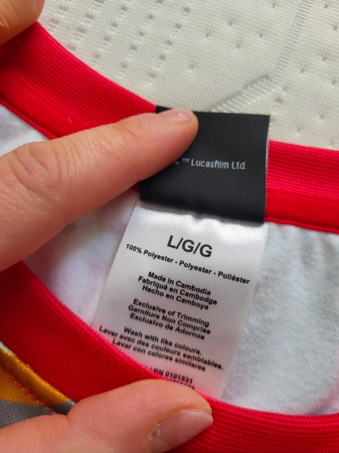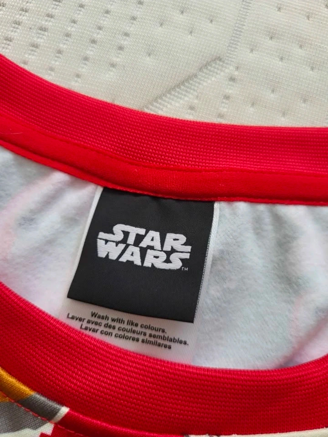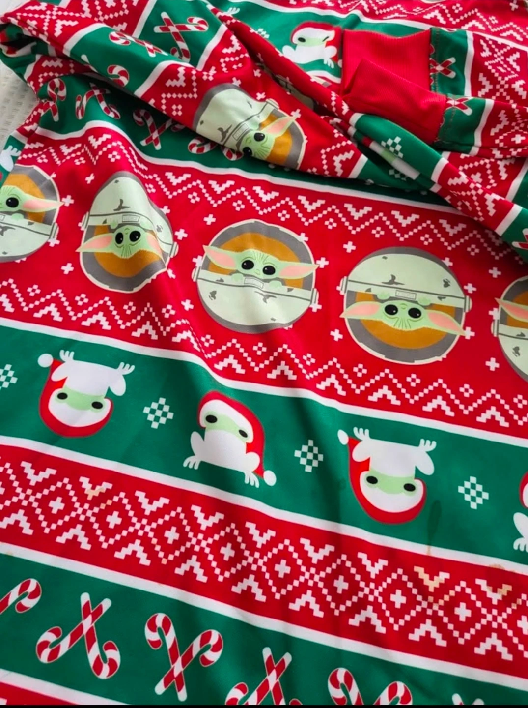 This festive Star Wars sweater features a fun Baby Yoda Christmas print. It's made of 100% polyester and is a size L/G. Wash with like colours.