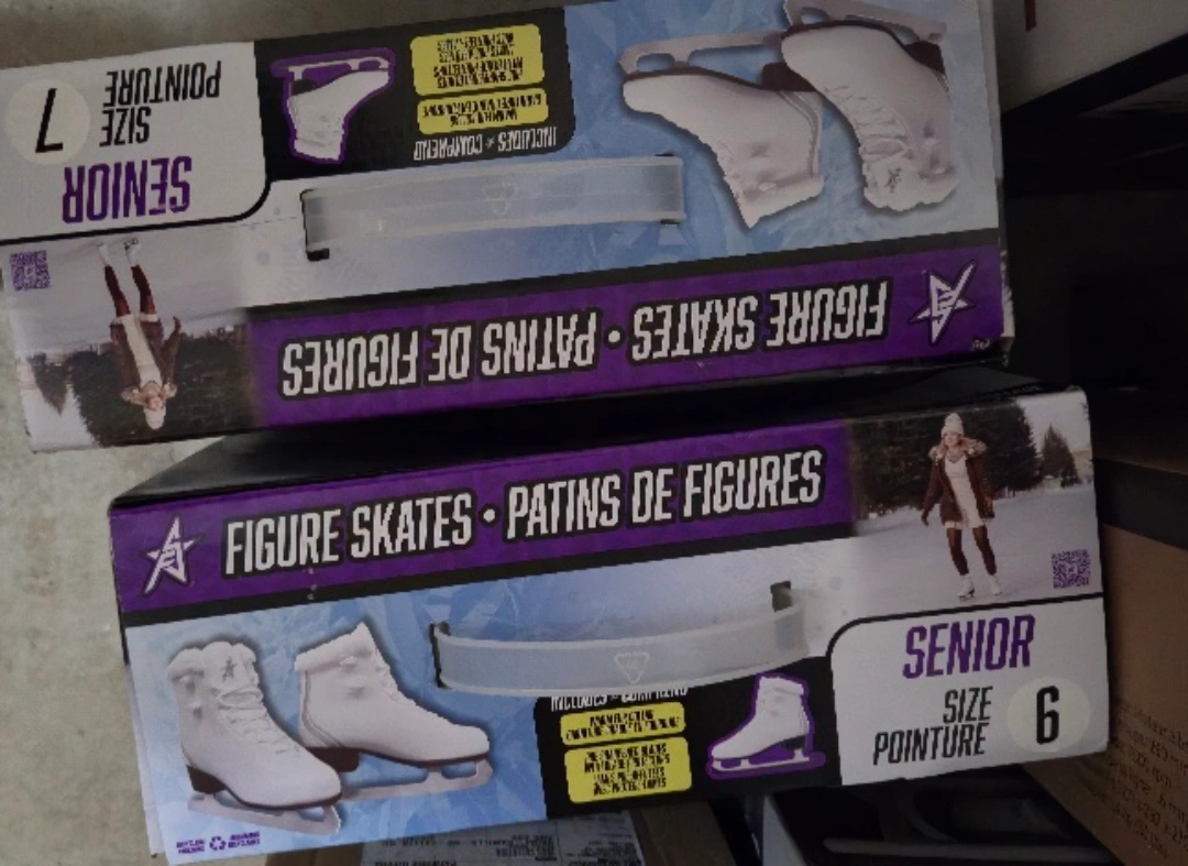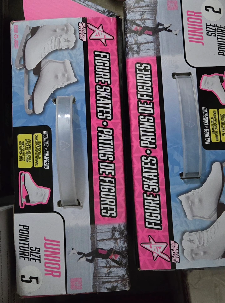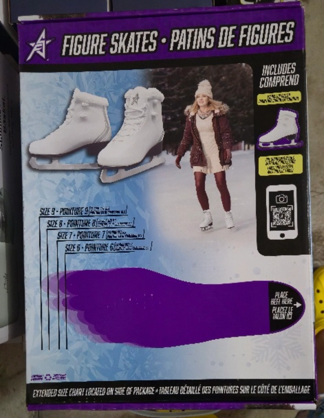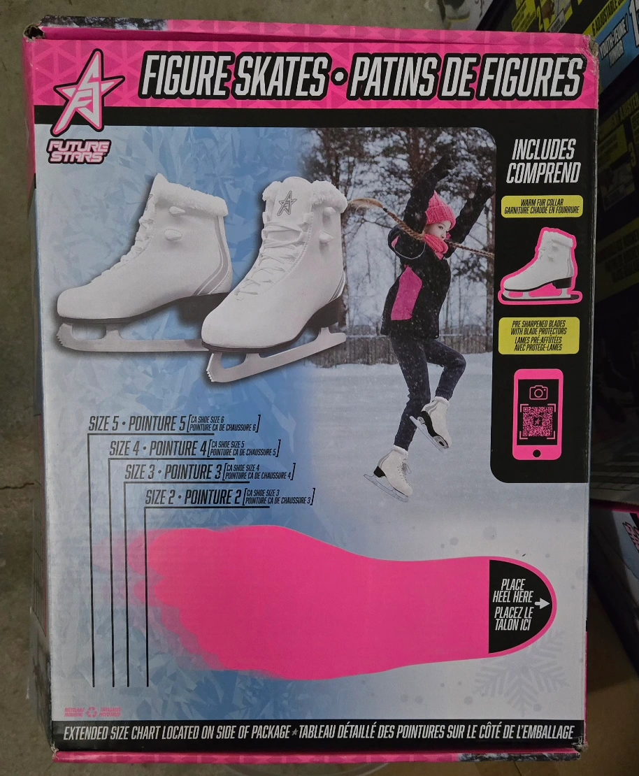 Get ready to glide with these Future Stars Junior figure skates! They come in size 5 and include blade protectors, so they're ready to hit the ice. The box is included too!