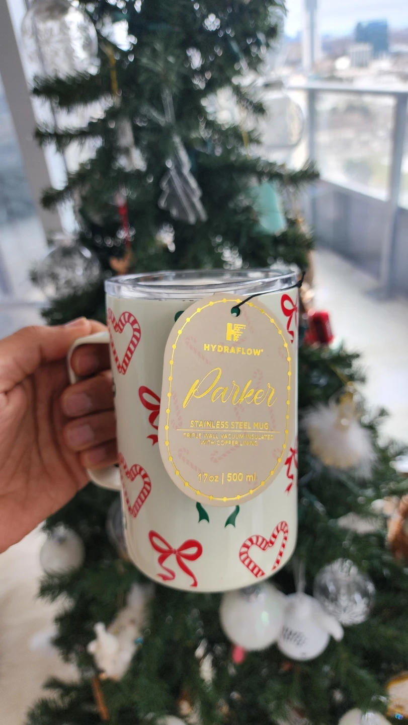 This is a special edition Christmas themed Hydraflow Parker stainless steel mug, perfect for keeping your drinks hot or cold!