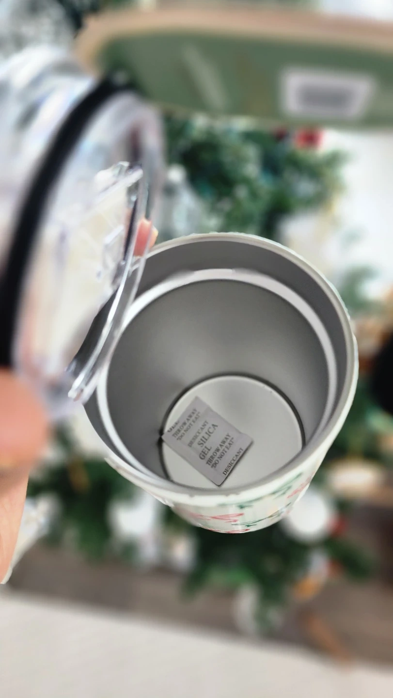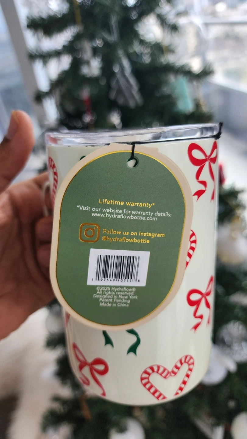 - It holds 17 oz (500 ml) and features a cute design with candy canes and bows.