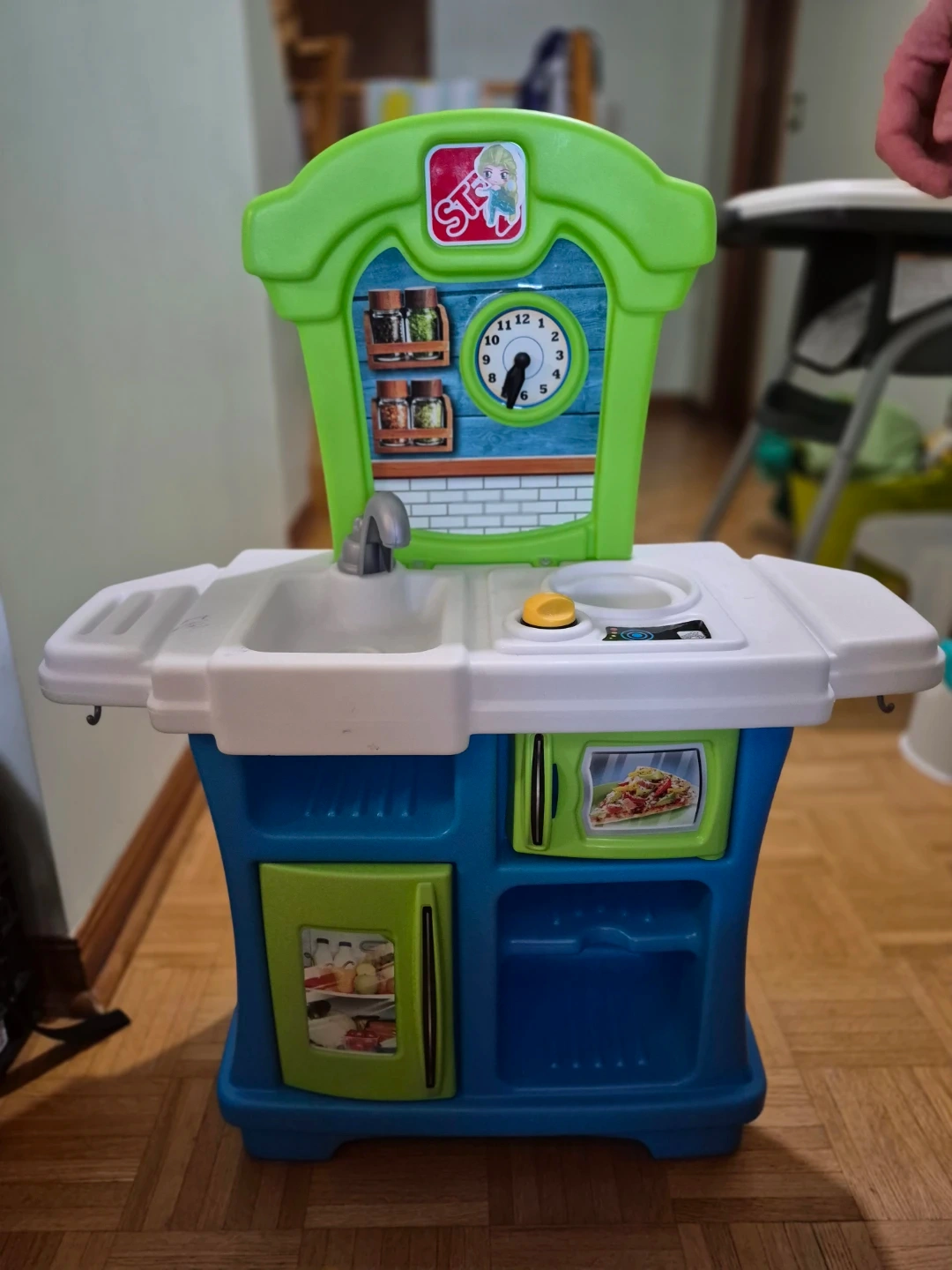 Step2 play kitchen with stove, sink, and microwave. Little Tikes blue round trampoline and children's easel. Great for hours of imaginative play!