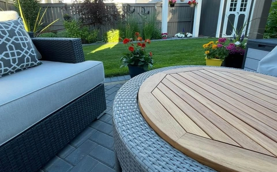 - 32" round ottoman/centre table with teak wood centre