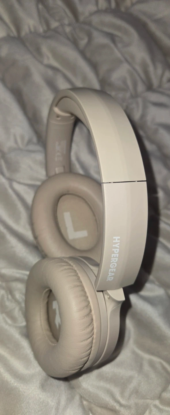 Hypergear over-ear headphones in a light beige colour. They're comfortable with padded earcups. They fold for easy storage. Sound quality really good used for once only still new