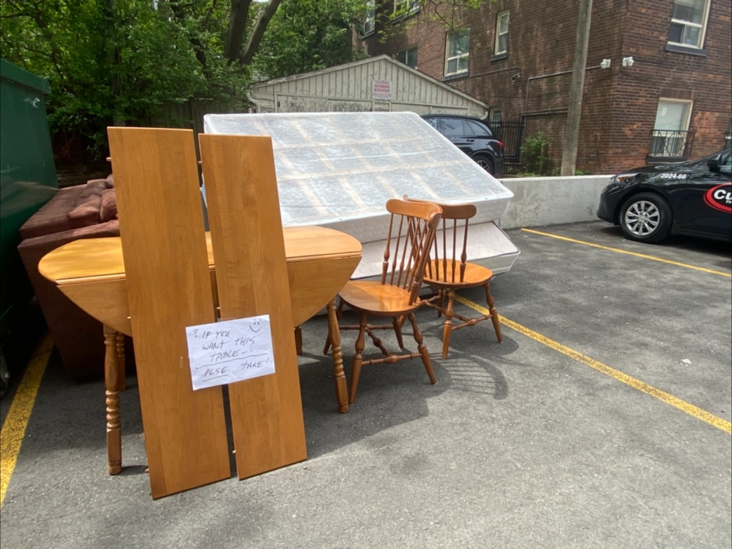 Out back behind 1500 Bathurst Street right now if you want it. It’s beside the garbage bins and a few mattresses. It was put out this morning and is still there.