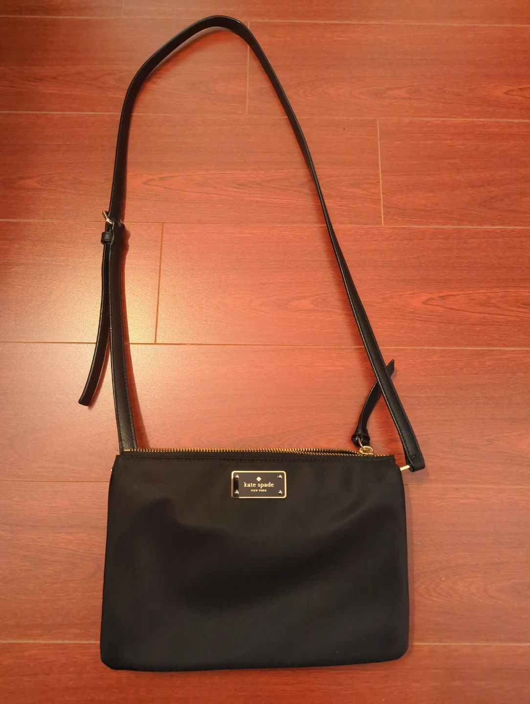 A brand new Kate Spade black nylon crossbody bag. It has a zippered closure and an adjustable strap. It's a great size for everyday essentials!