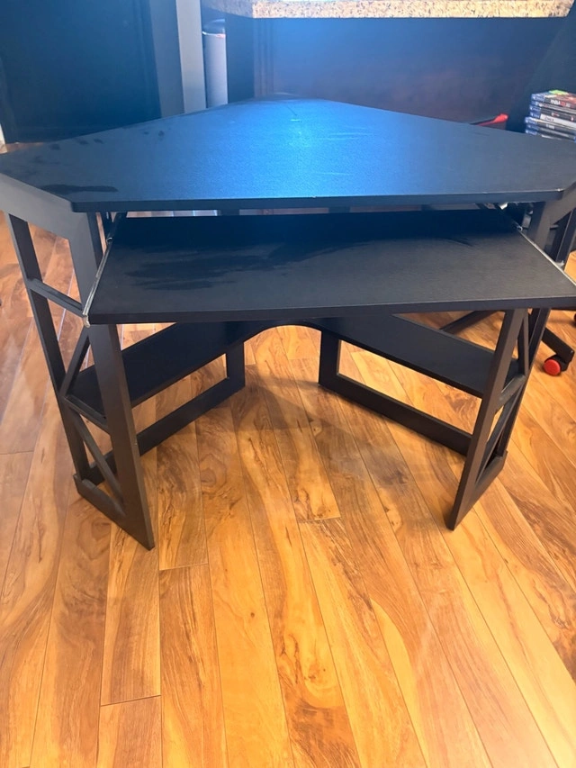 Buy & SellBlack corner desk with chairBlack corner desk with chair$125Corner desk with keyboard tray and chair. Excellent condition.WHERE TO MEETCheck LocationView MapSELLERGrahamWoodbridge211 review0 chats·0 favorites·4 viewsSEND CHAT TO SELLERHi Graham! I’m interested in your listing.Hi Graham! I’m interested in your listing.Get the Karrot app to chatSign In to chat