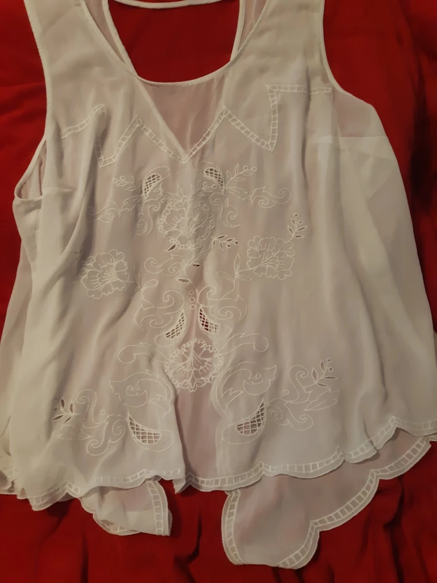 Selling a pretty white lingerie top with delicate embroidery. It's in great condition and would be a lovely addition to your wardrobe.