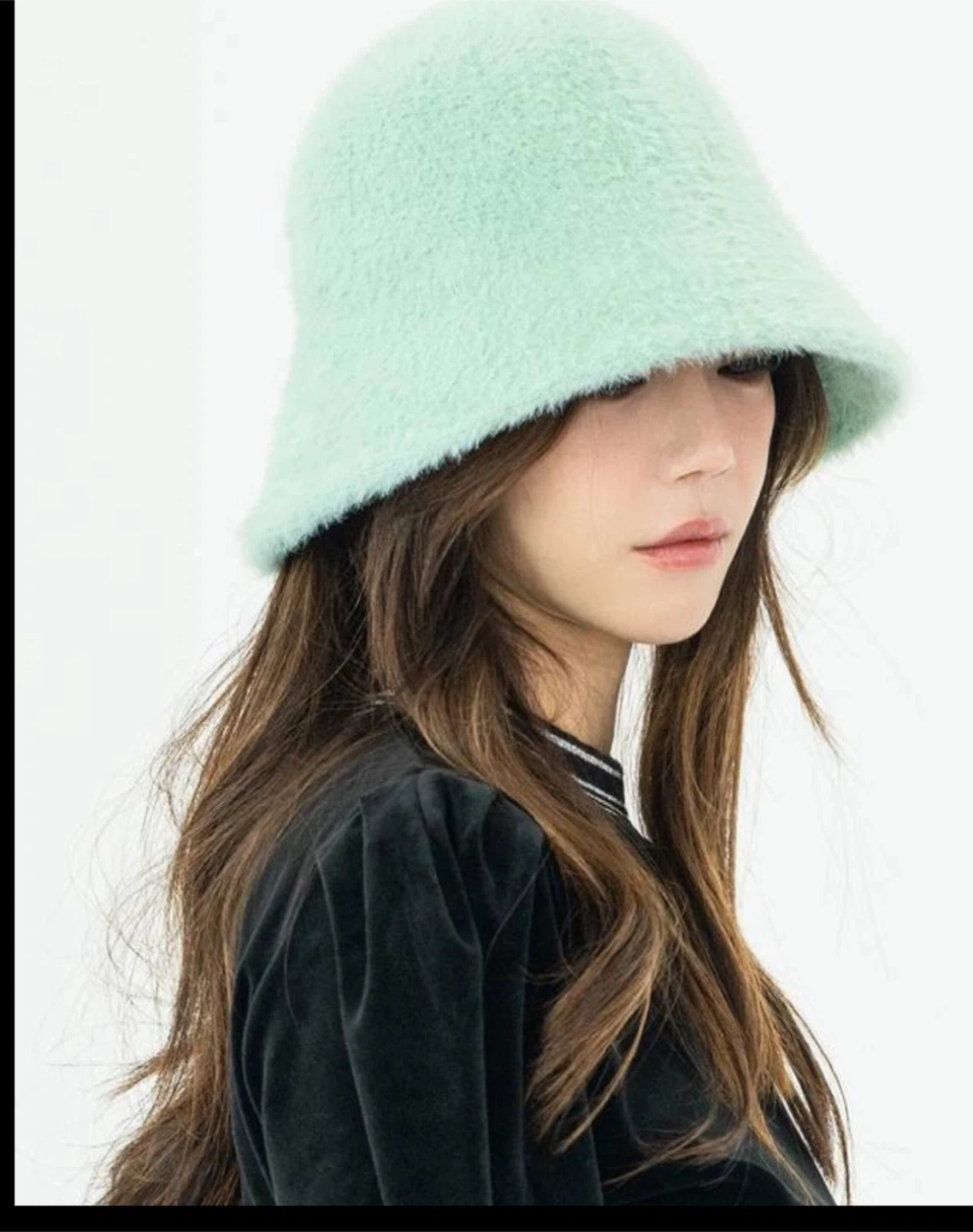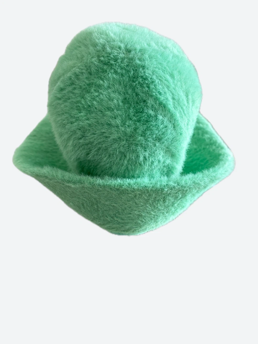 84Selling a fuzzy bucket hat in a vibrant green colour! It's super soft and adds a fun pop to any outfit. Perfect for keeping cozy and stylish during cooler days!