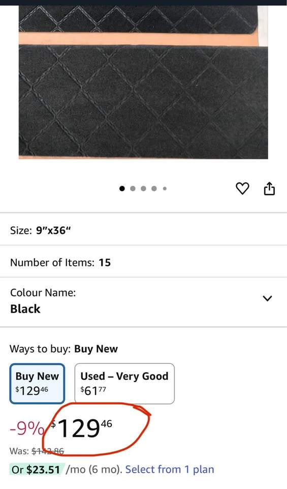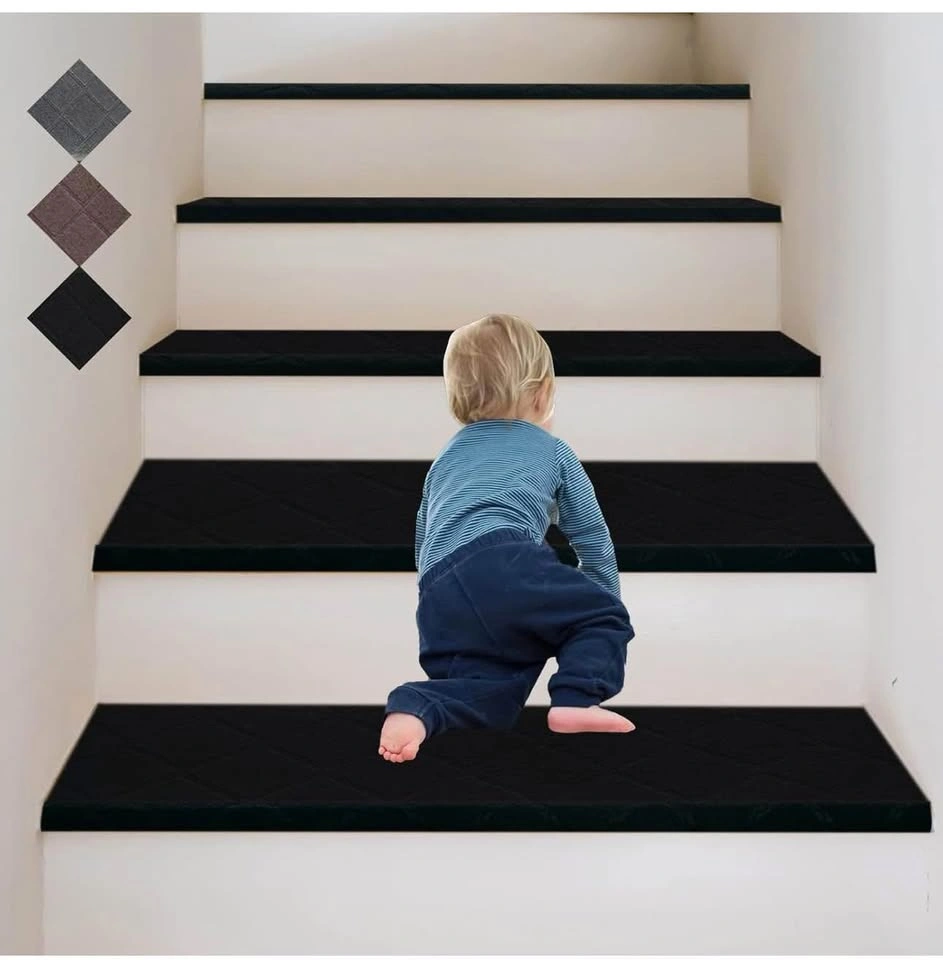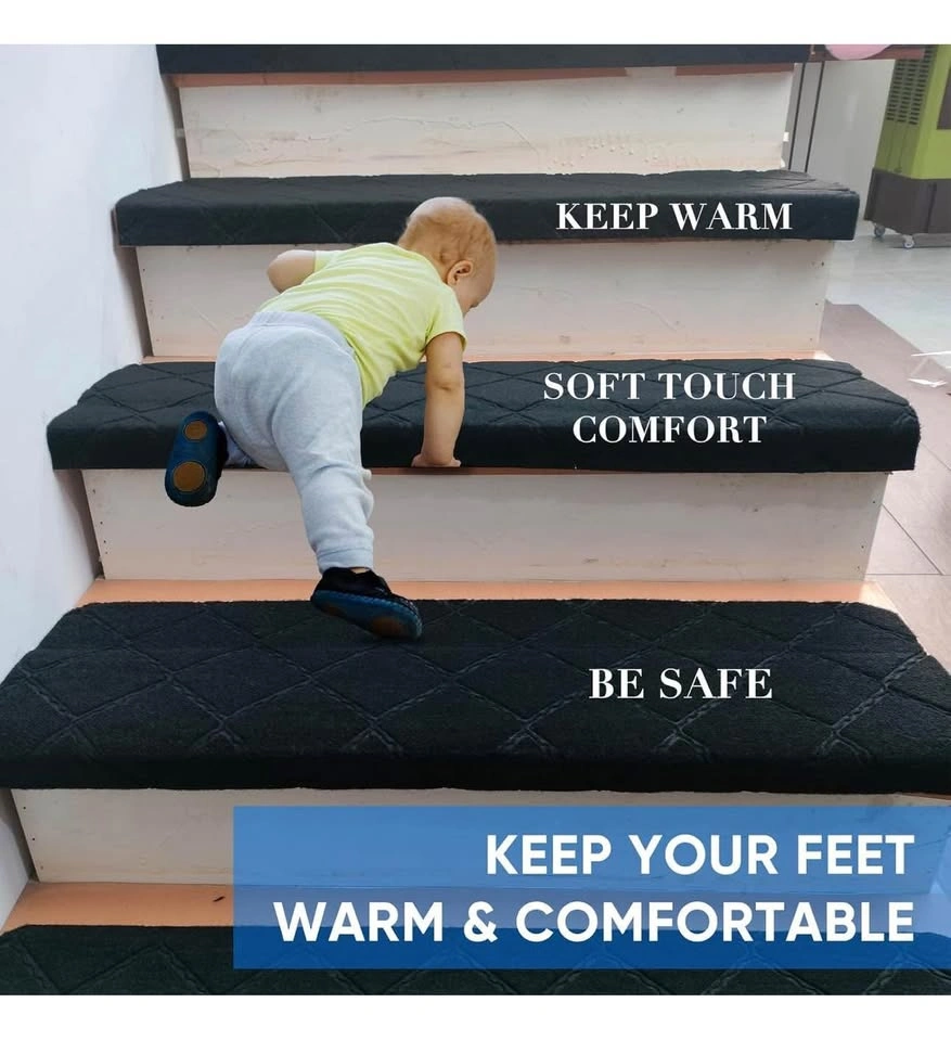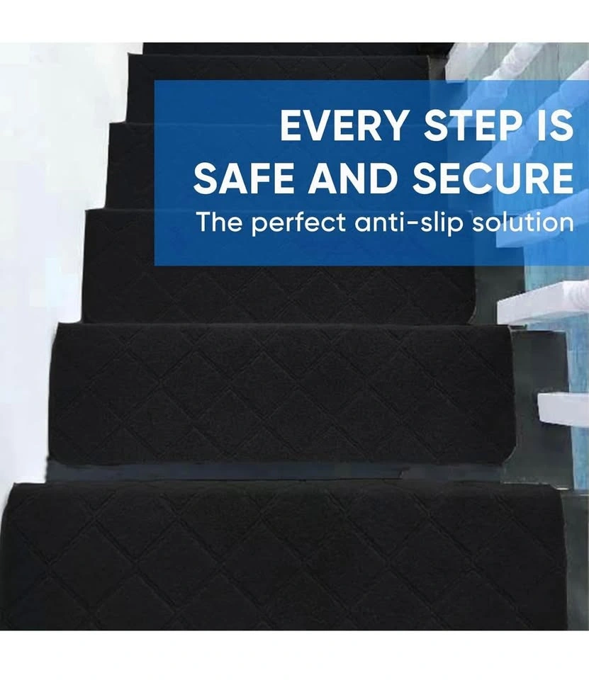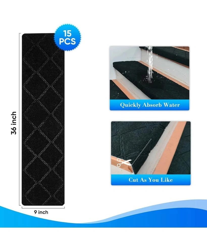 9"X36" Stair Treads Carpet Non-Slip Set of 15, Black BN