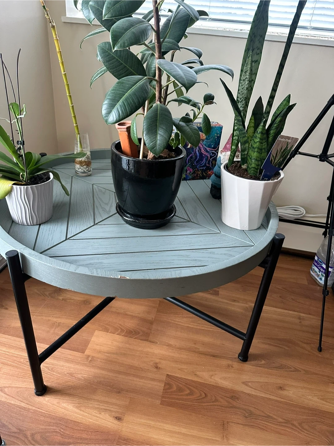 Round coffee table included — sturdy, with a few small chips on top (cosmetic only).