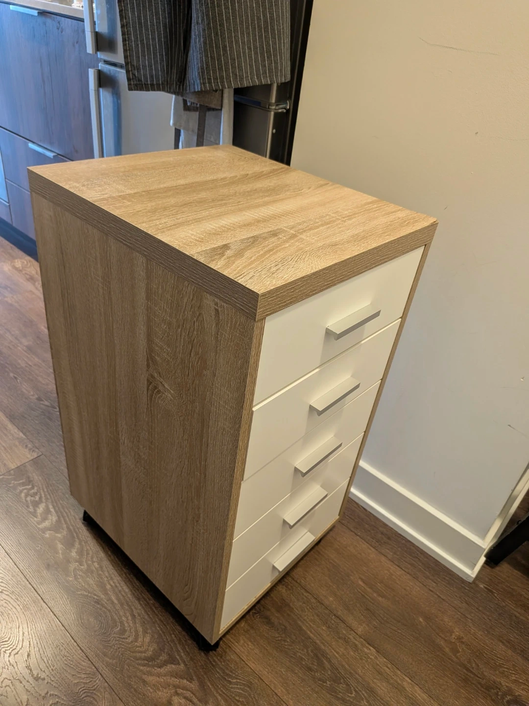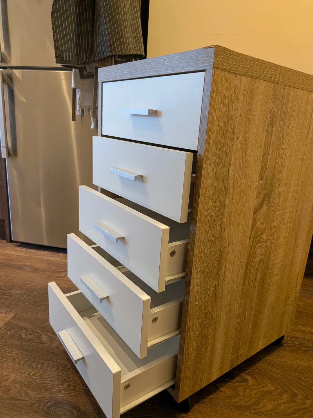Mix of white drawers and a wood-look frame Perfect for adding some extra storage to any room in your home or office
