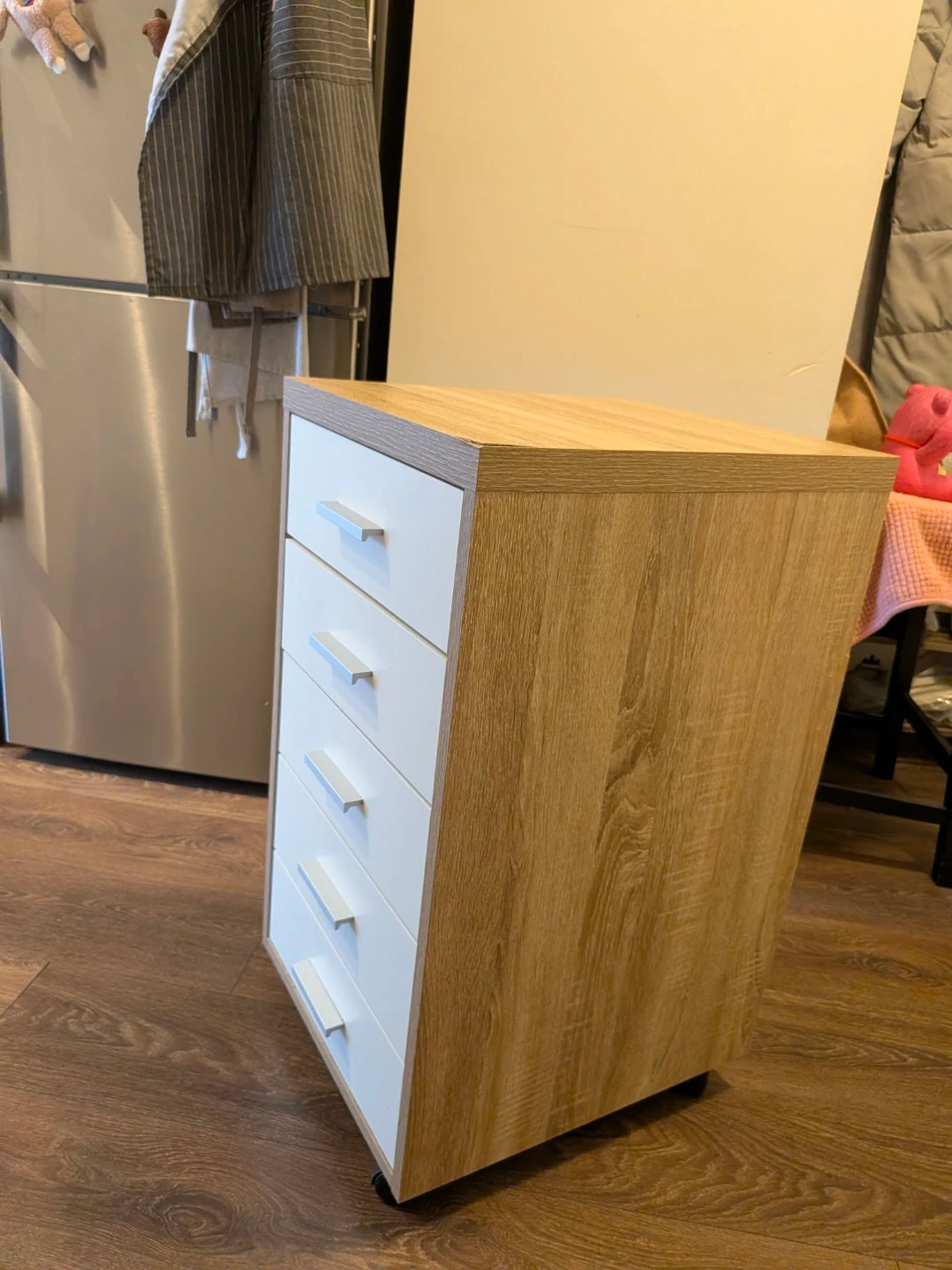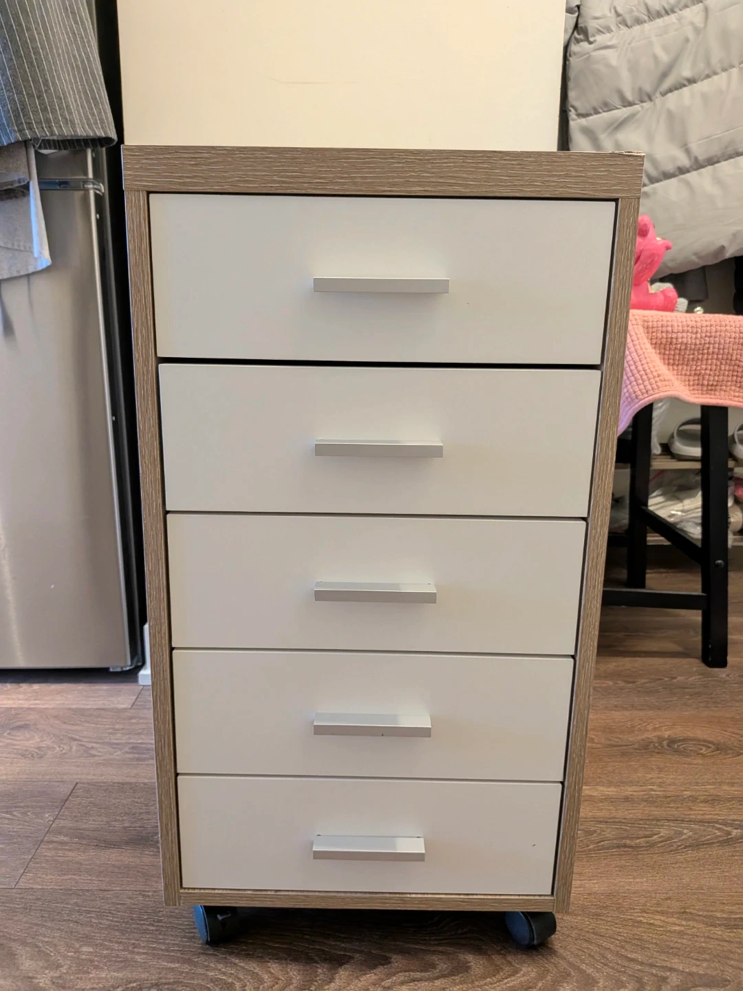 Handy 5-drawer cabinet with rolling wheels