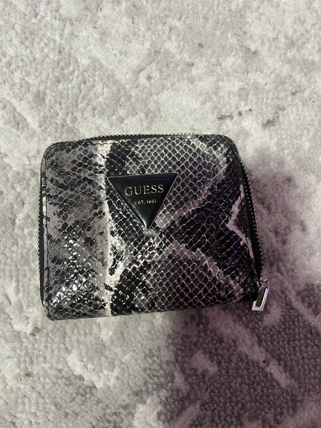 Selling a Guess wallet with a snakeskin pattern! It's in great condition and has a zipper closure. Perfect for keeping your cards and cash organized