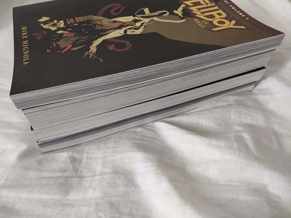 The 4 volumes of Hellboy's Paperback Omnibus set. Books have been read, but are in great condition minus some shelf wear shown in the images. Would like to sell as bulk, not individuals.